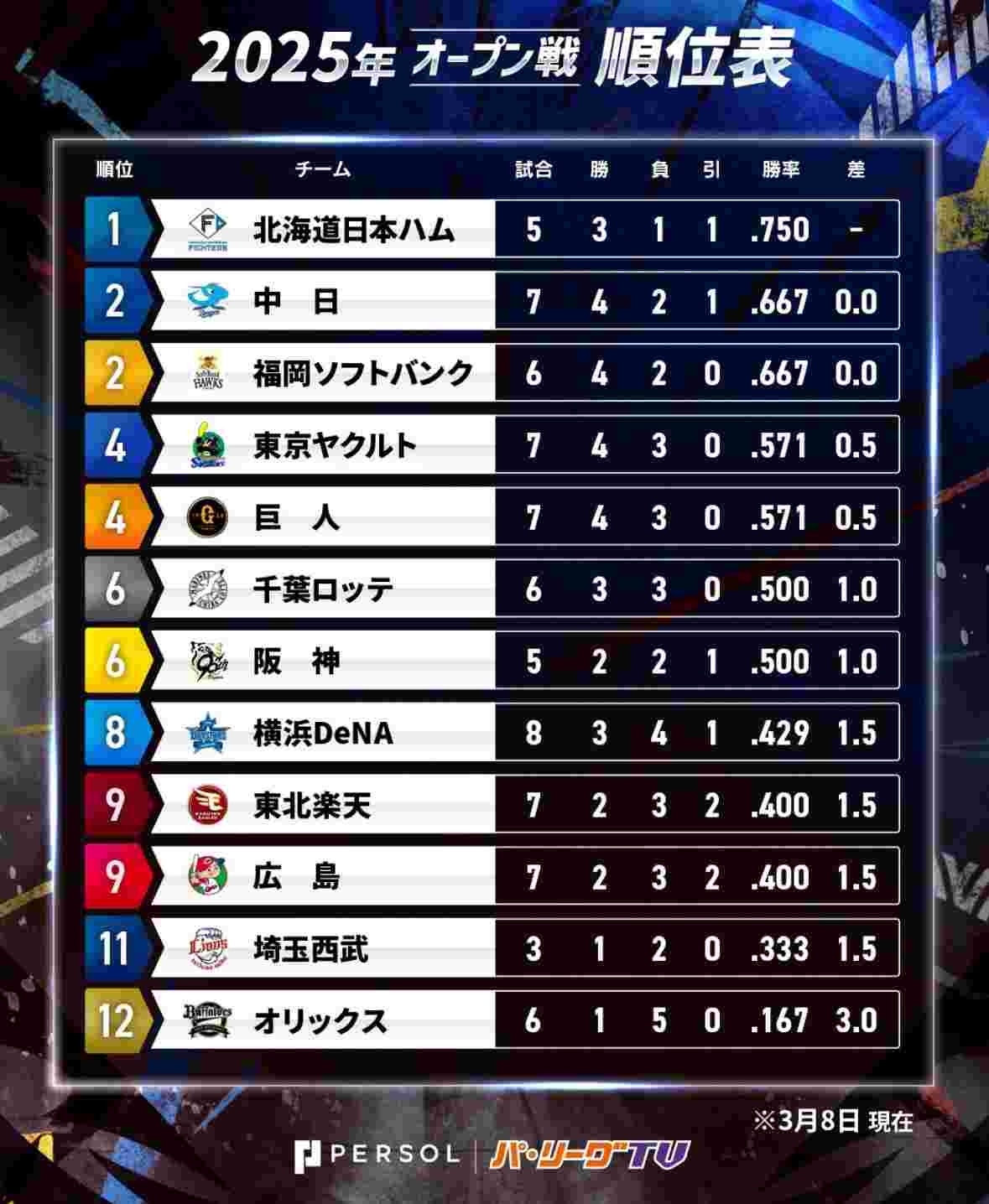- オープン戦だけじゃシーズン順位なんて分からないけどオープン戦ボロボロだと開幕不安だわ