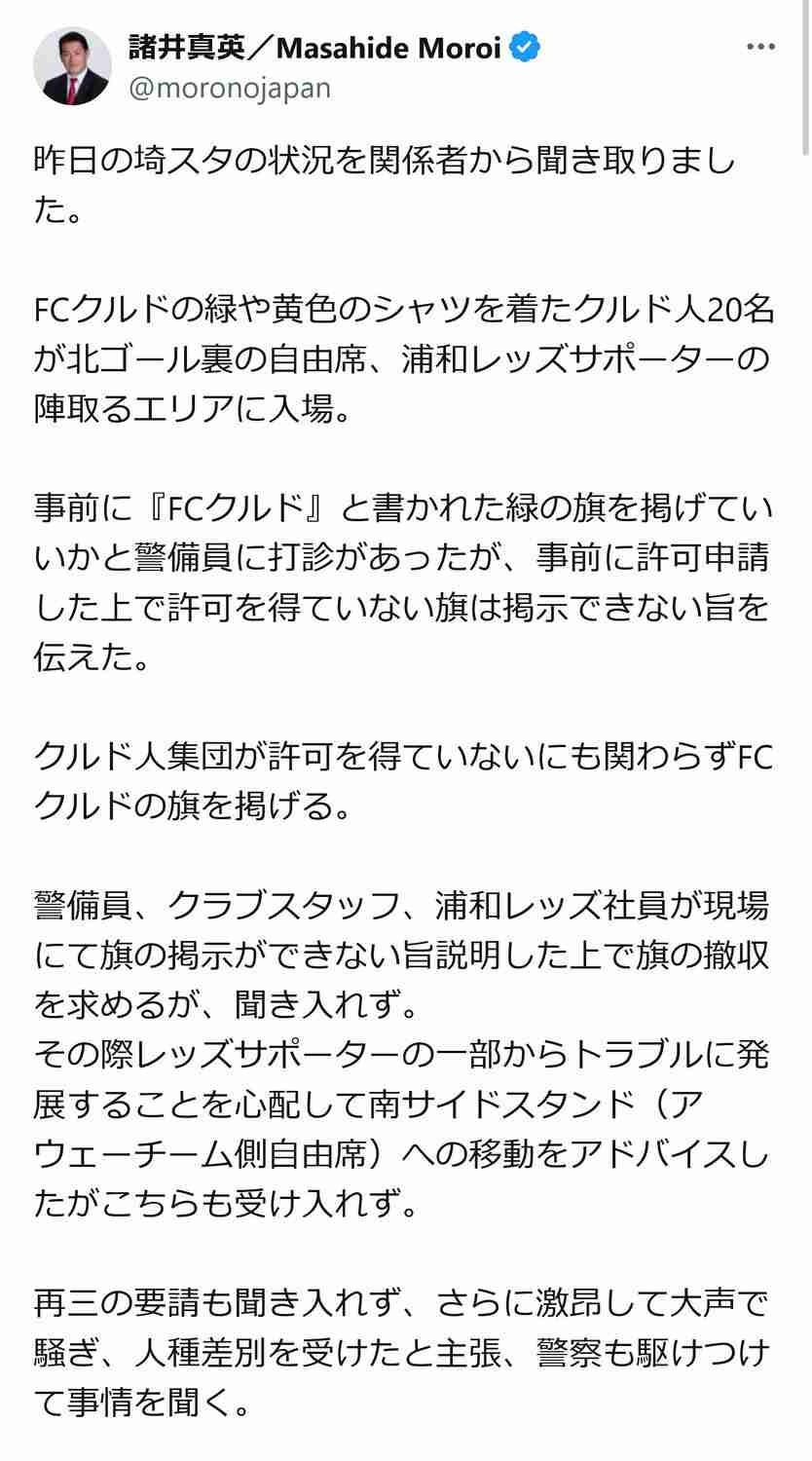 - 浦和サポて気性荒くなかったっけ?クルド人叩きのめさないと図に乗るぞ