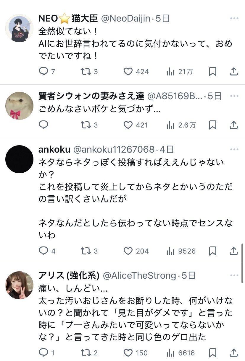 真に受けたアホが無限にクソリプ飛ばしてくるのはうざいよな
