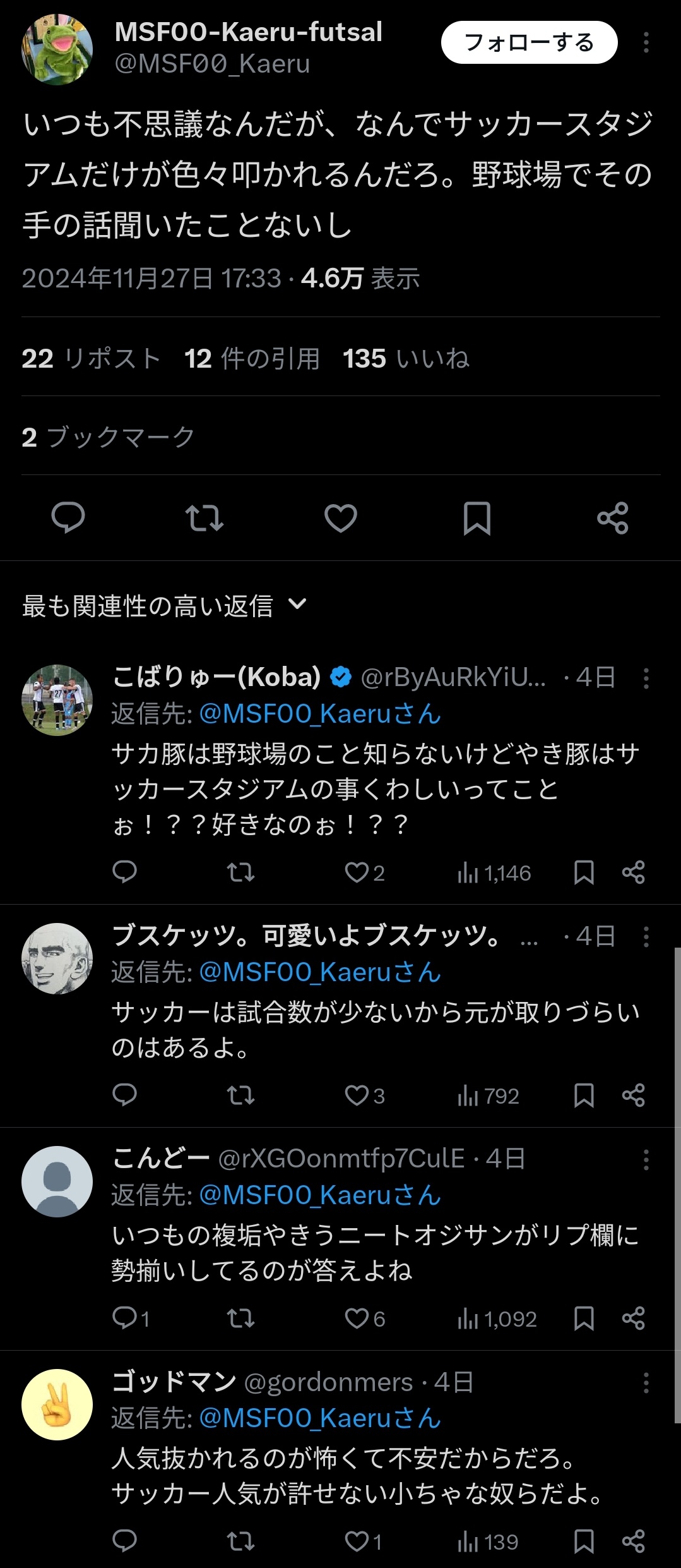 サッカーファン「なんでいつもサッカースタジアムだけ叩かれて野球場は叩かれないんだ???」⇐どう答える?