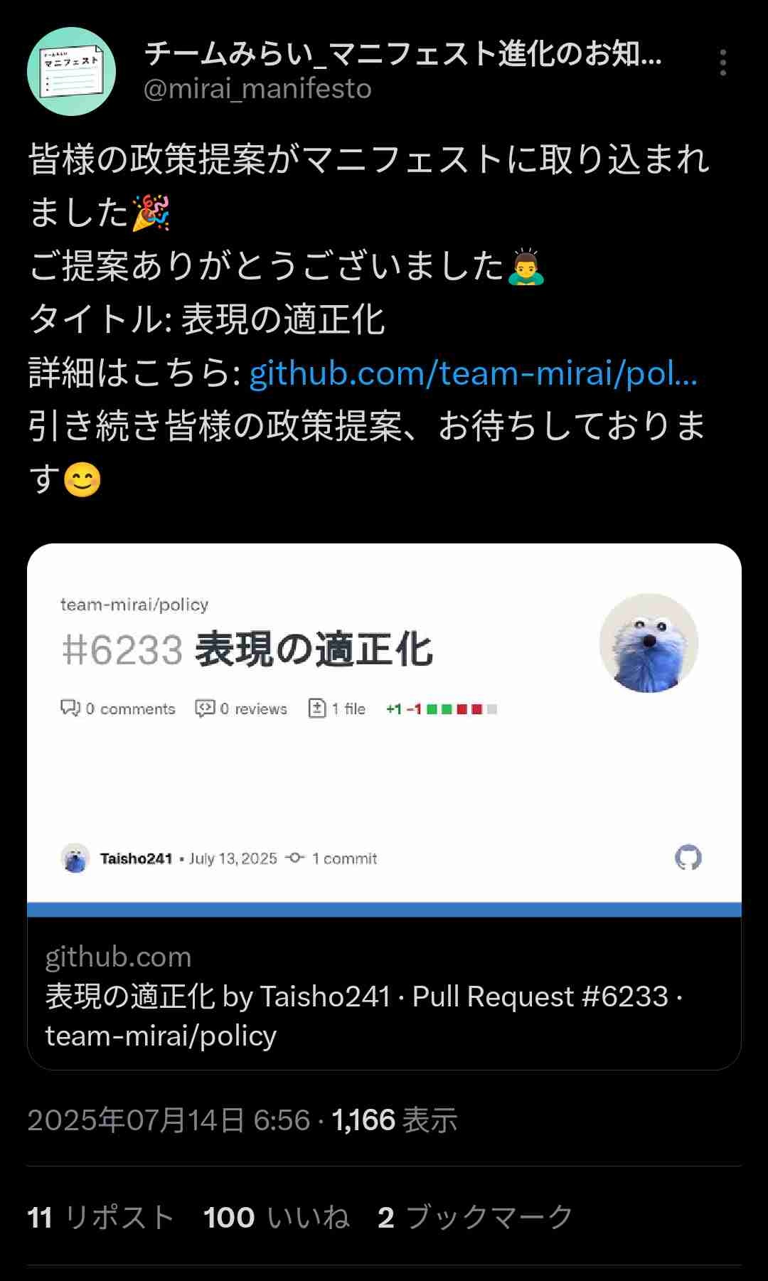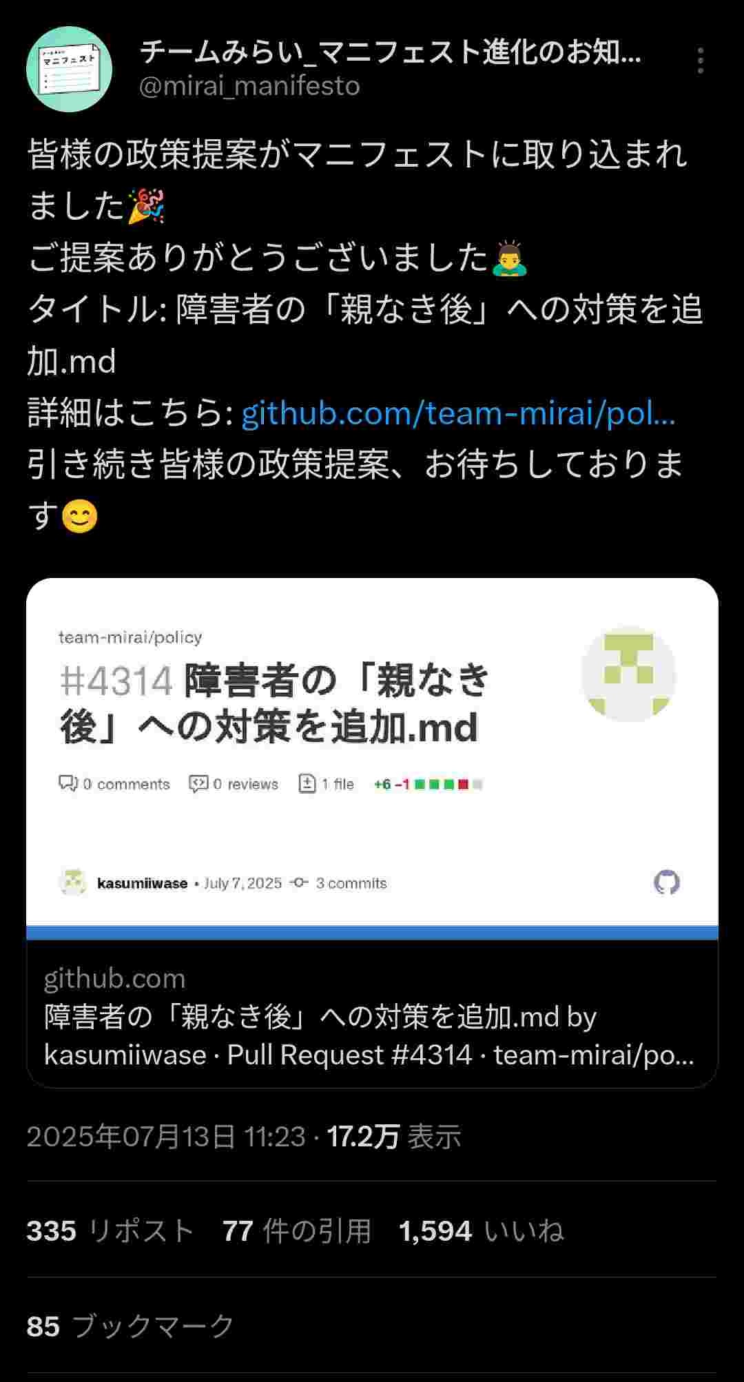 チームみらい「政党助成金は無償行政用ツールの開発に使います、意見を吸い上げ常に公約をアプデします」こいつらが人気な理由ww