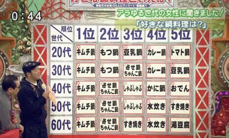 チャンネル桜がこれにブチ切れて独自で調査したけどマジでキムチ鍋が一位だったんよ