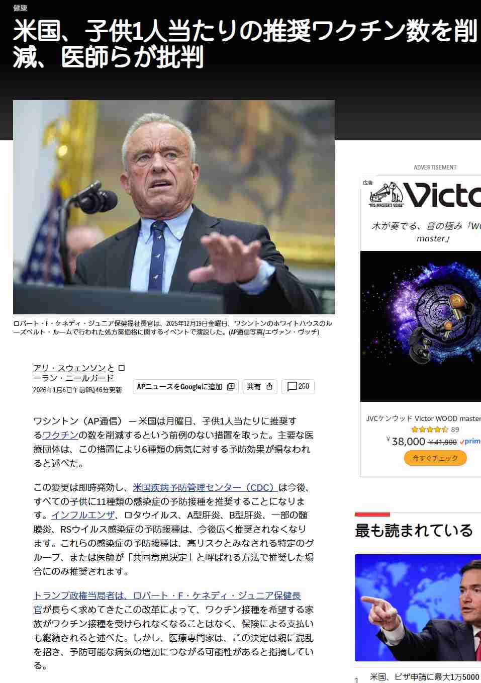 トランプ政権、JFKジュニア主導で子供への推奨ワクチン数を大幅削減、米国医師会は科学的根拠がないと批判