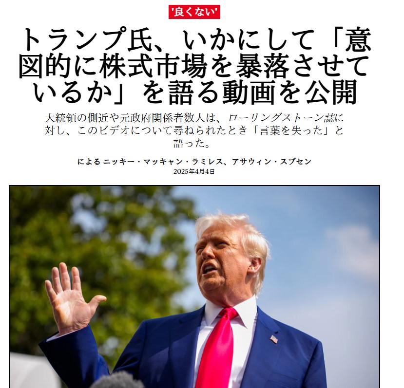 トランプ氏大反論「私は意図的に市場を崩壊させているだけだ。経済がわかってないわけではない」