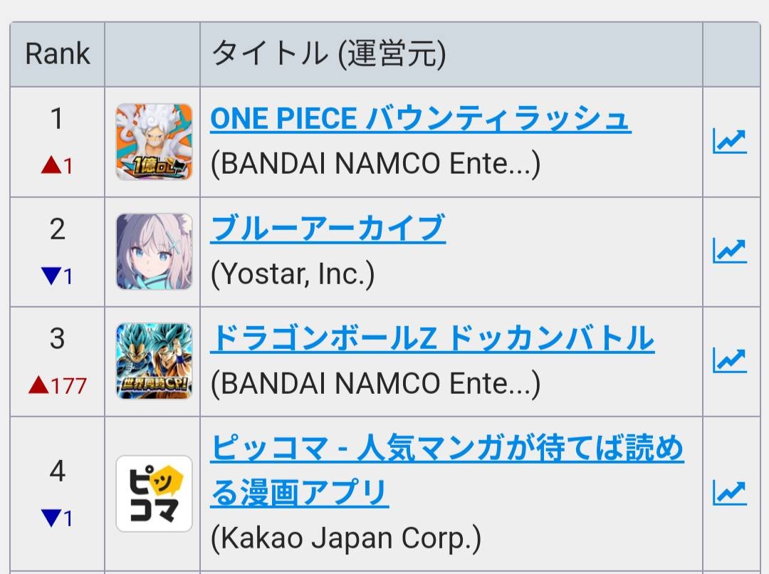 - ブルアカはあっさり2日連続1位か完全に覇権やな