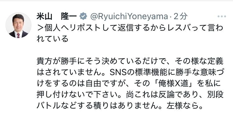 - 同じ政党の人にいい加減止められてもレスバがやめられない