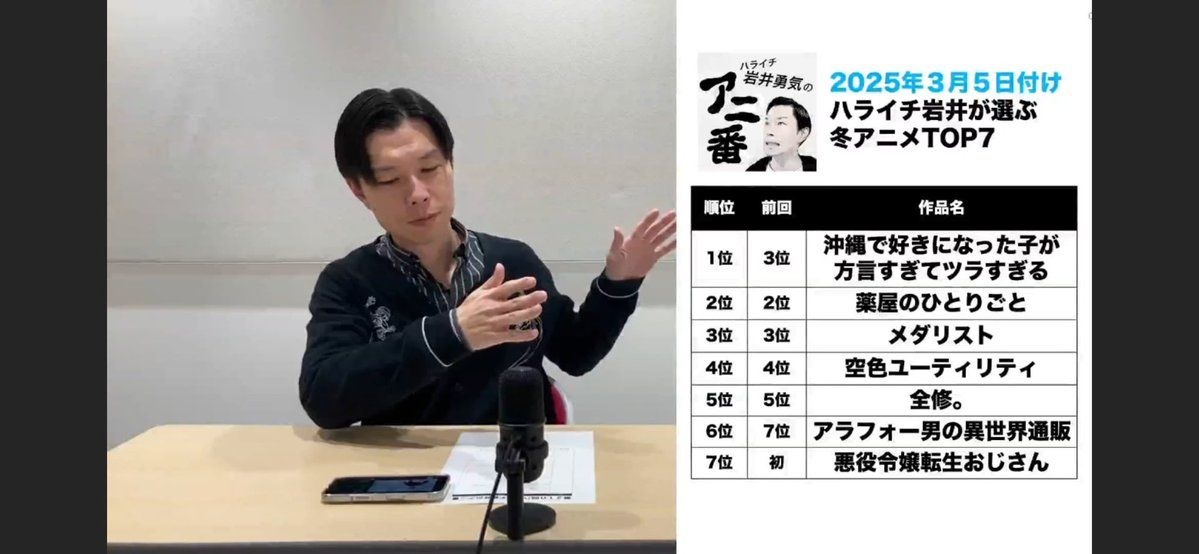 ハライチ岩井「今期アニメランキング?まぁこんなんでええやろ…」←結果w