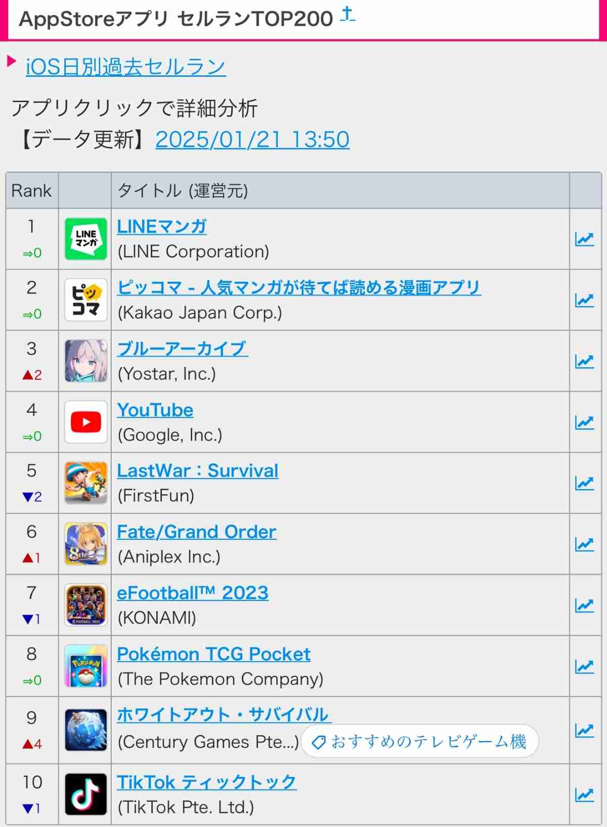 - 覇権だからセルランなんて上辺だけ見てないんや