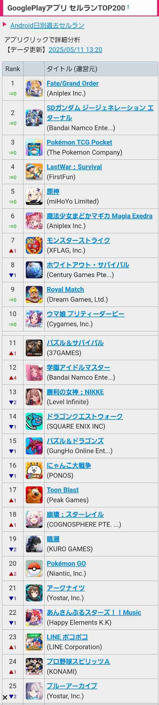 - FGO 5月4日のセルラン 25位 5月5日 34位