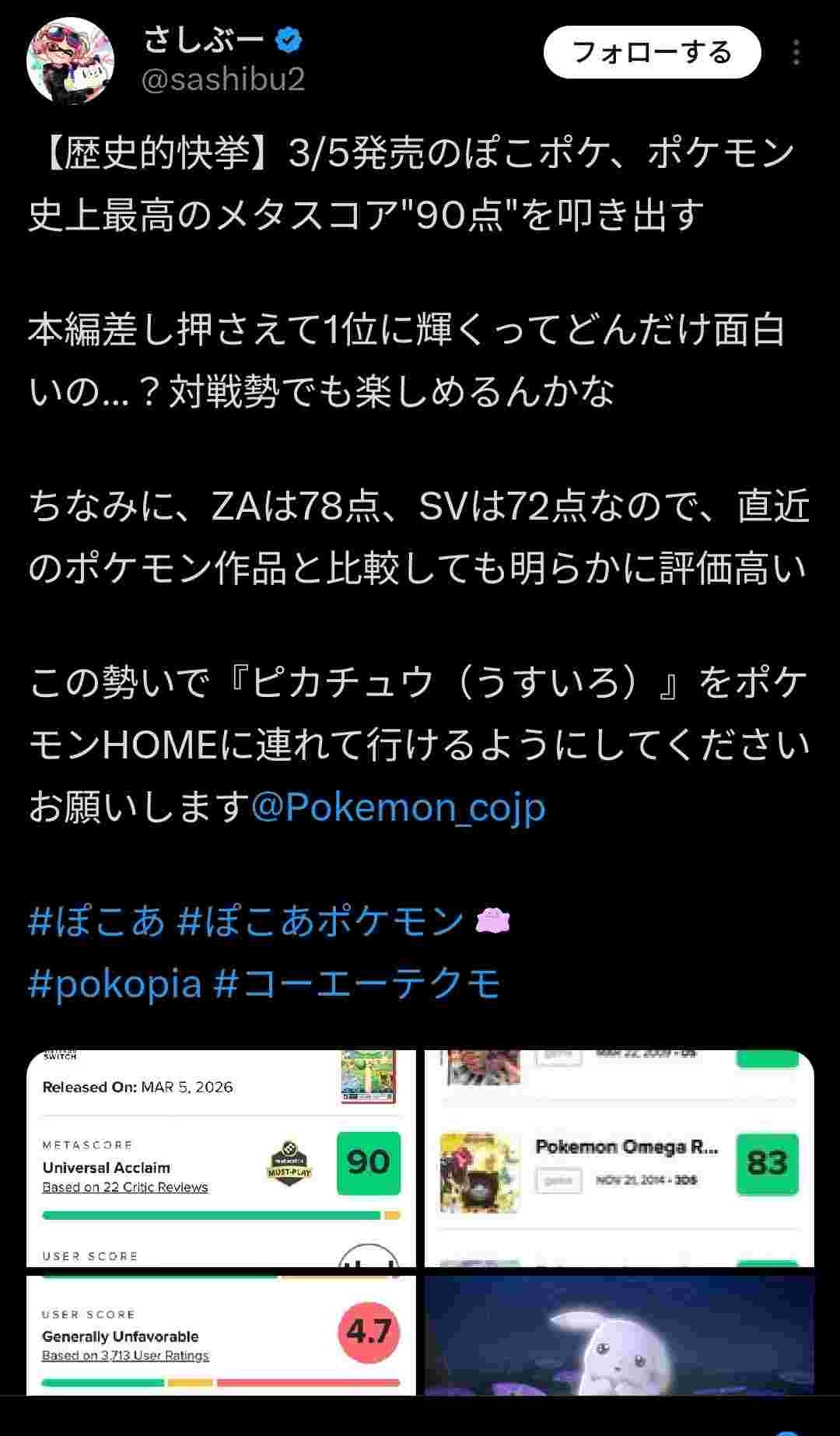 ポケモン新作、史上最高のメタスコア90点を叩き出すwww