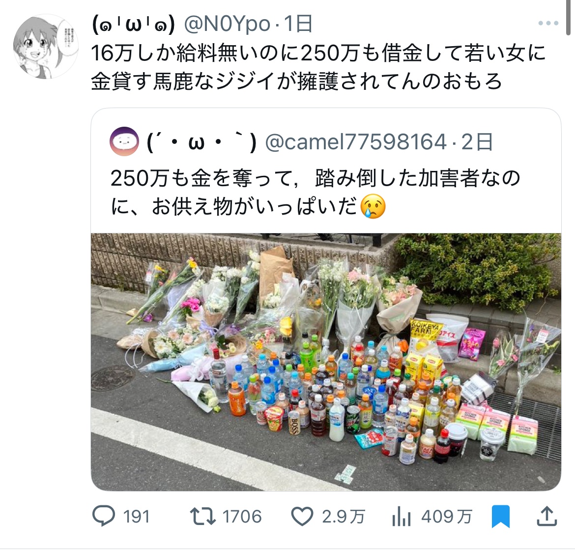 「ヘルプマークつけた40の弱者から250万もとったら刺されるで」ってな
