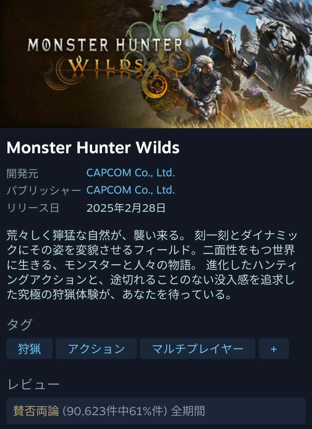 - Steamレビュー賛否両論 (90,623件中61%件)