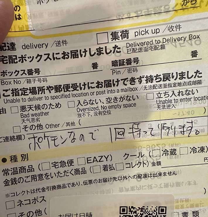 置き配指定だけどポケモンだと盗まれるからってこと?そんなこと配達員に関係ある?