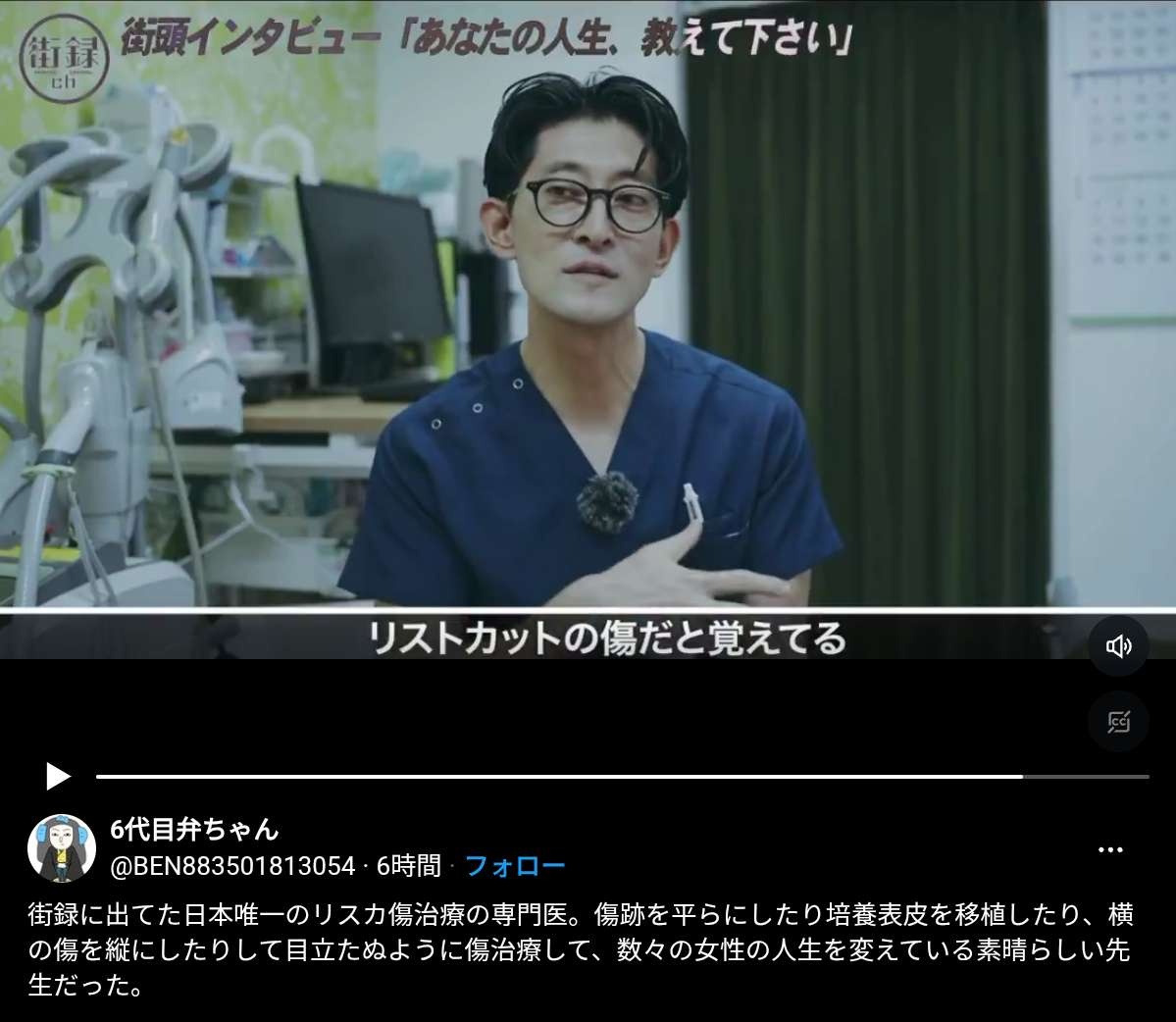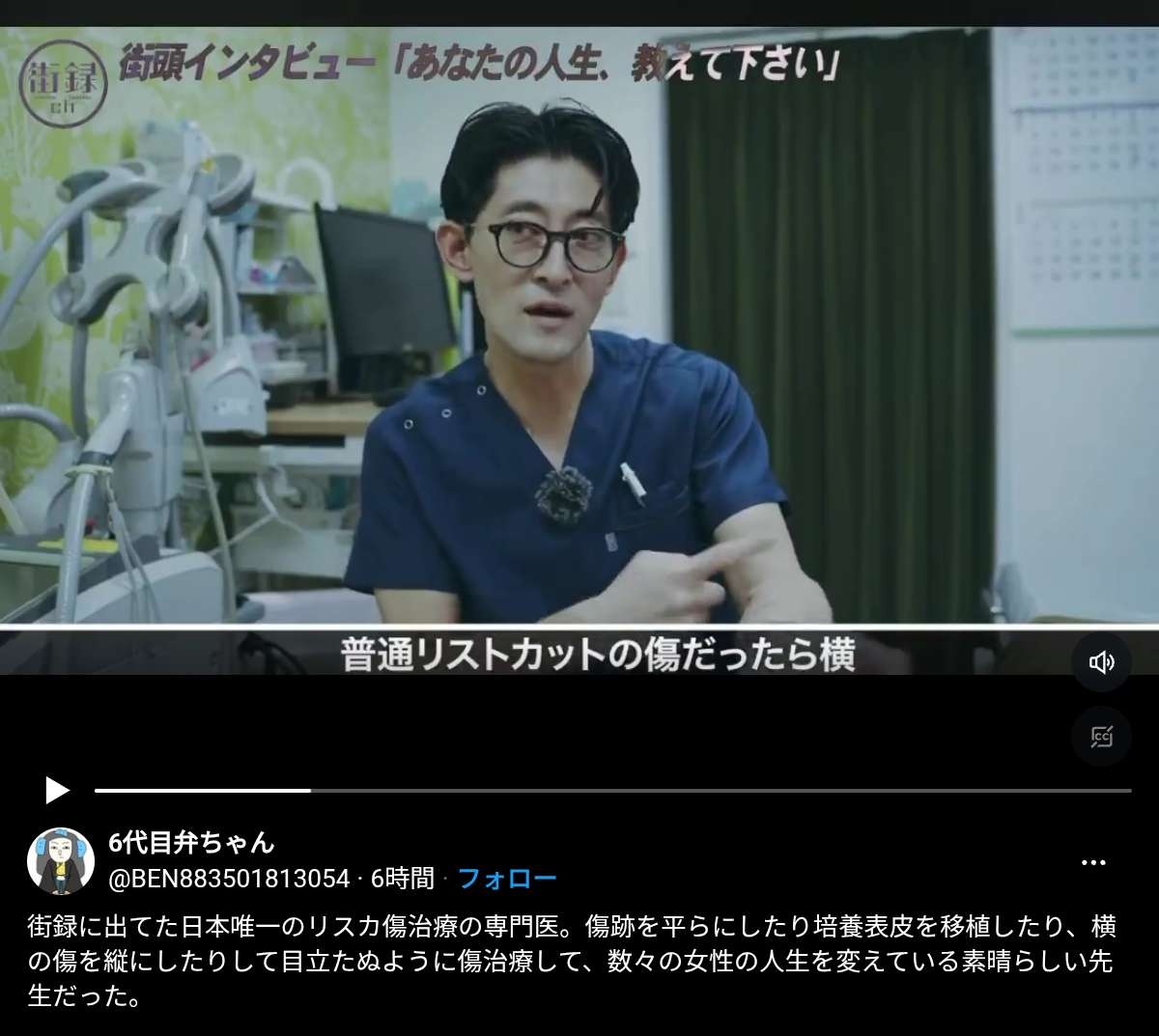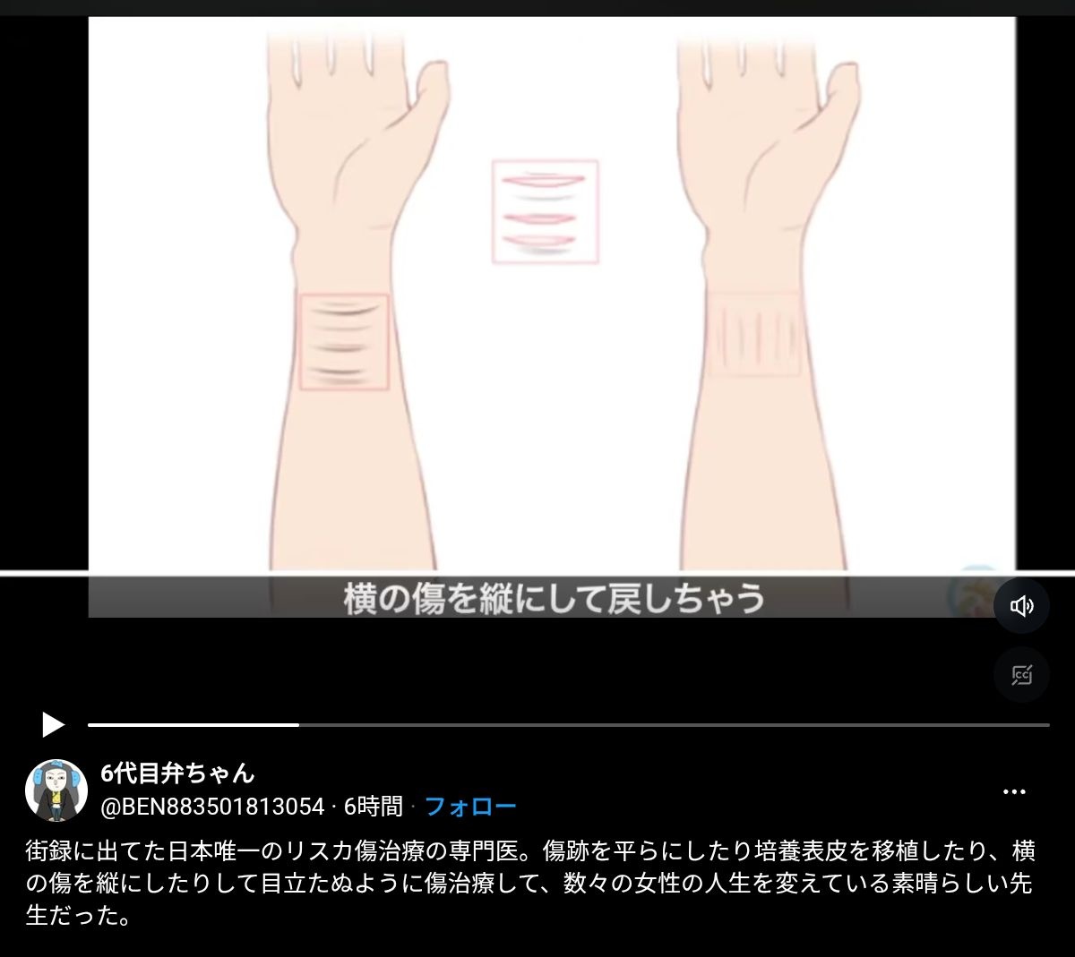 リスカ治療専門家「リスカ跡の皮膚を正方形に切り取り、90度回転させて張り直して縦の傷跡にするだけで誰も気にならなくなります」