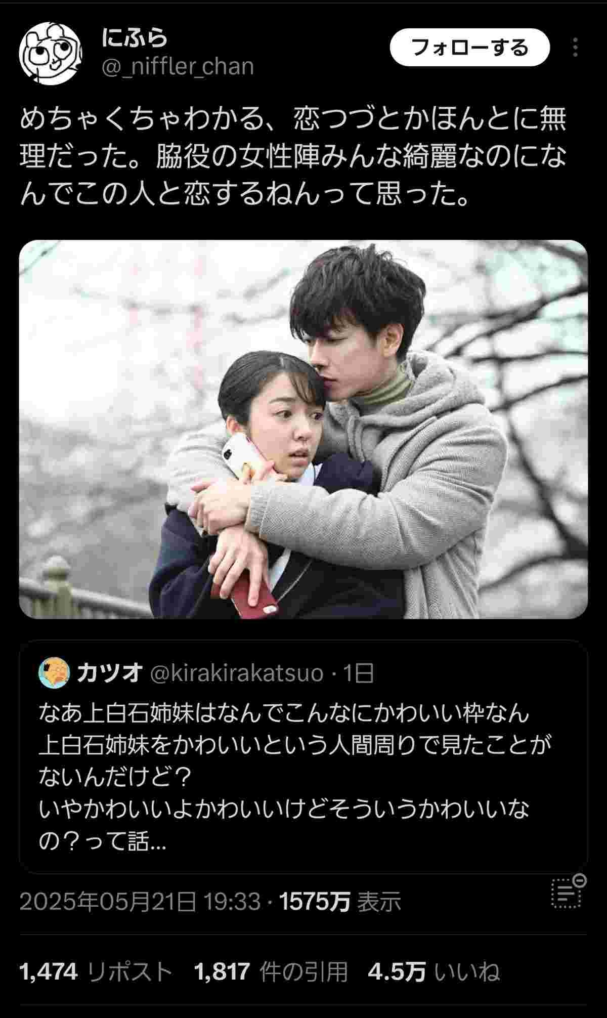- ちな上白石妹だけじゃなく上白石姉のほうもブスって叩かれてる模様🥺