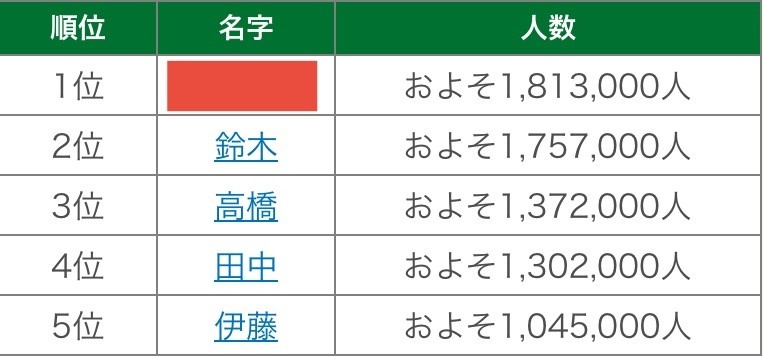 - それぞれの国のランキング 1位の苗字を当てるクイズ