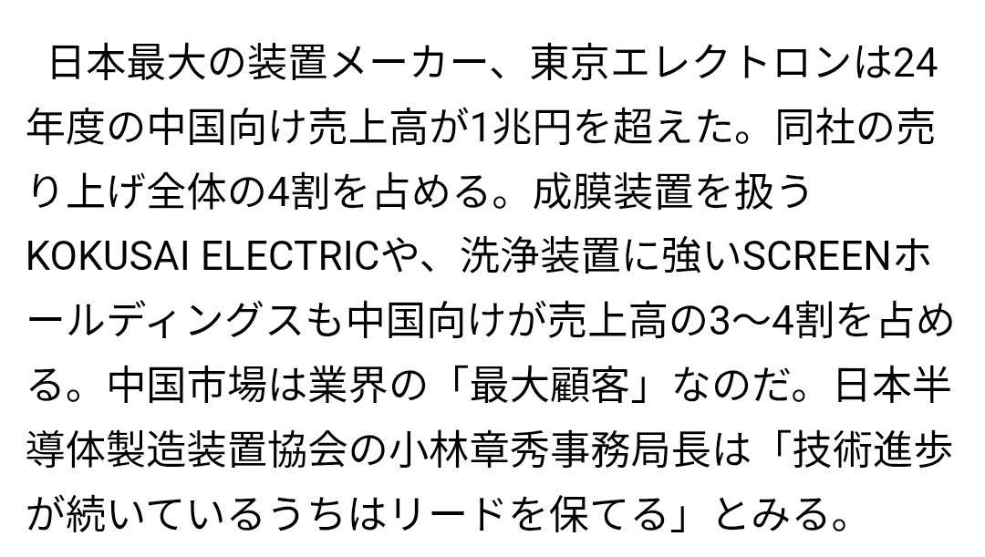 - 東京エレクトロンの売上全体の4割が中国…