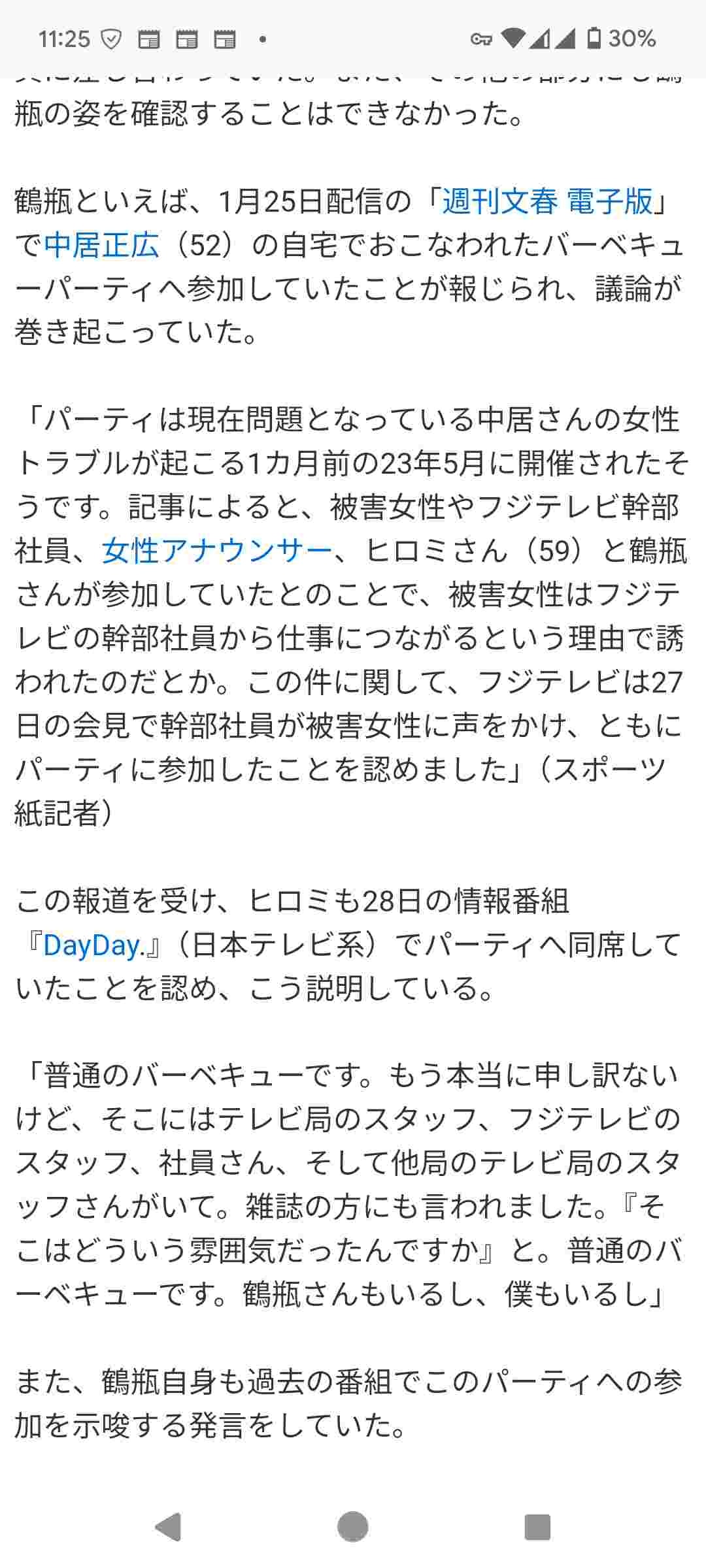 - 自分もA氏や中居氏と一緒に仲良くパーティーやってたのに