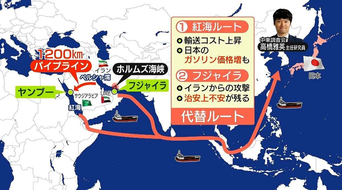 ホルムズ海峡を経由しない代替ルートからの原油調達の拡大を進めています」藤井キャスター