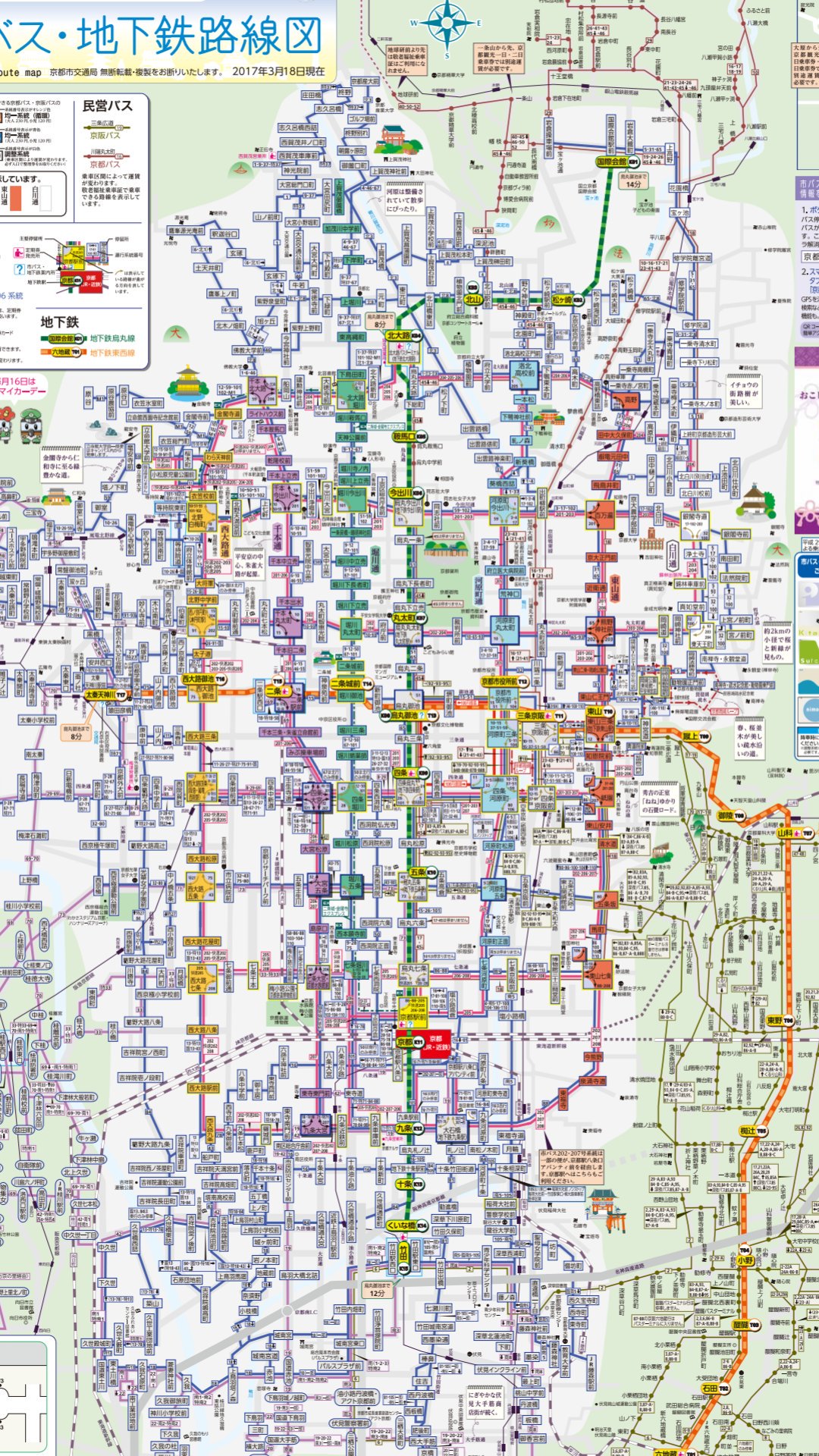 調べたら京都のバス路線は無駄にたくさんあって、市内のすべての道路にバスを張り巡らされる勢いなんだ