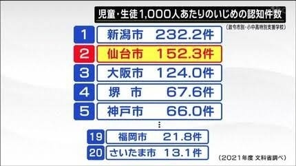 仙台でイジメが多い理由 東北は陰湿だからですか?