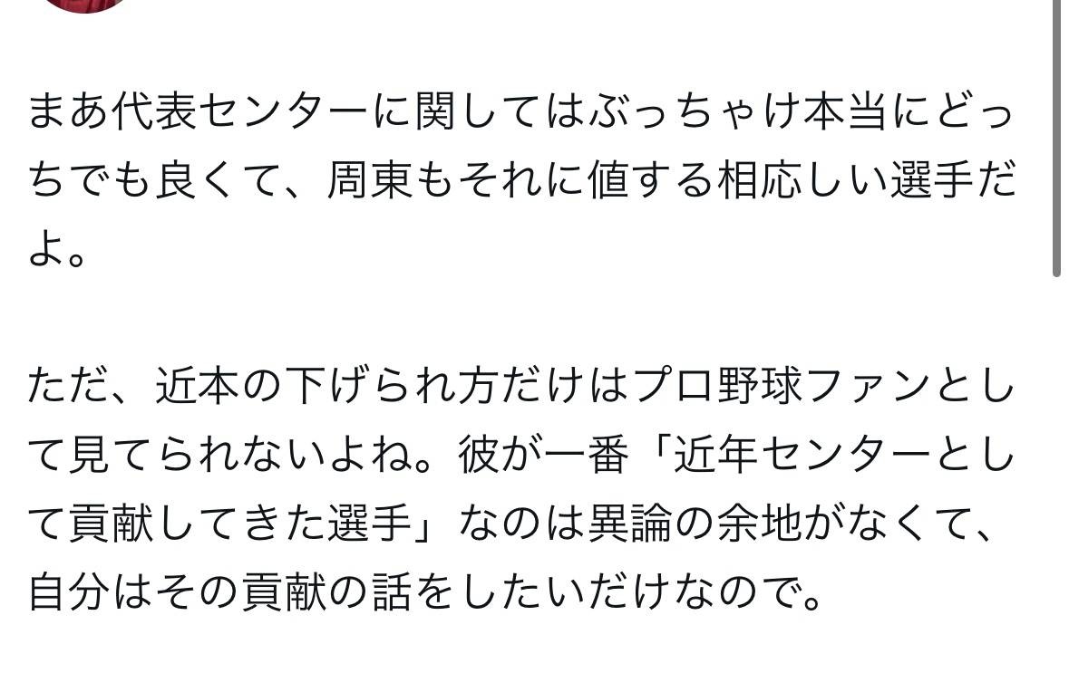 - 近本って大きな怪我や不調もなくずっと一定の成績残し続けてるのがすごいだけで短期決戦でほしいってなるタイプじゃないんだよな