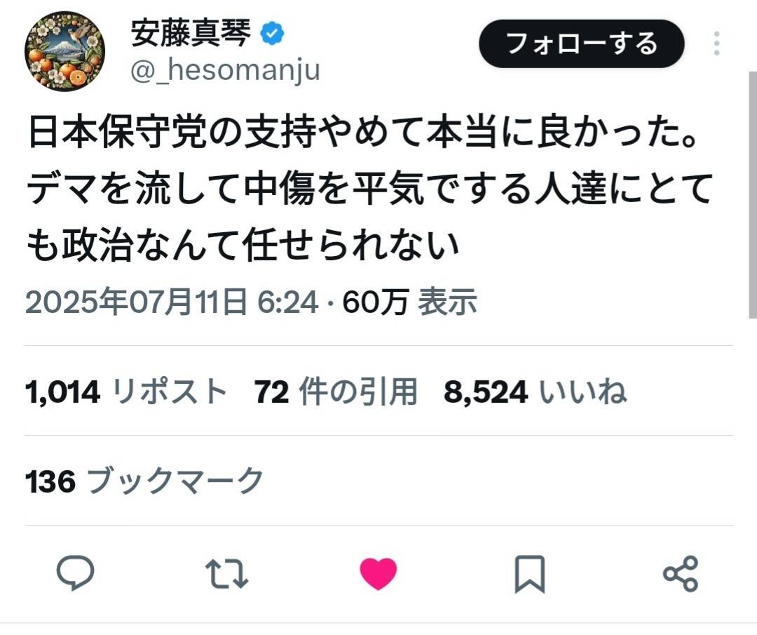 元保守党員が目を覚ます「日本保守党の支持やめて良かった。デマを流して中傷を平気でする人達にとても政治なんて任せられない」