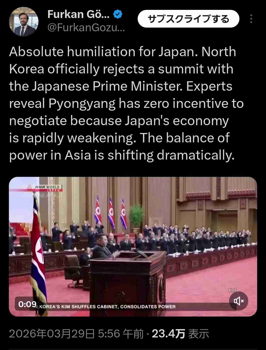 日本にとっての完全な屈辱だ。北朝鮮が日本の首相との首脳会談を正式に拒否した。専門家によると、日本の経済が急速に弱体化しているため、北朝鮮には交渉する動機がまったくないという。アジアの勢力図は劇的に変化しつつある。