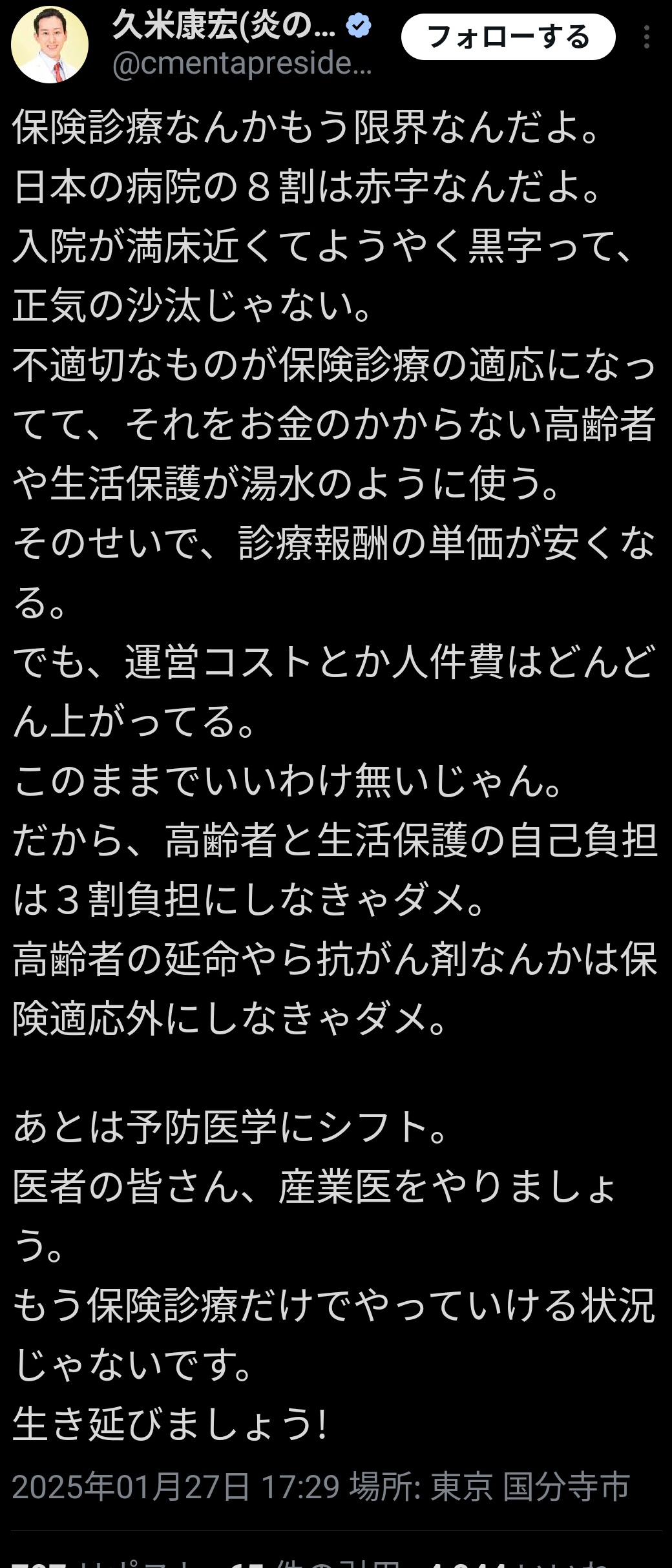 基本的に医者は過剰に金持ちだからね。それを避けた議論は意味がない。