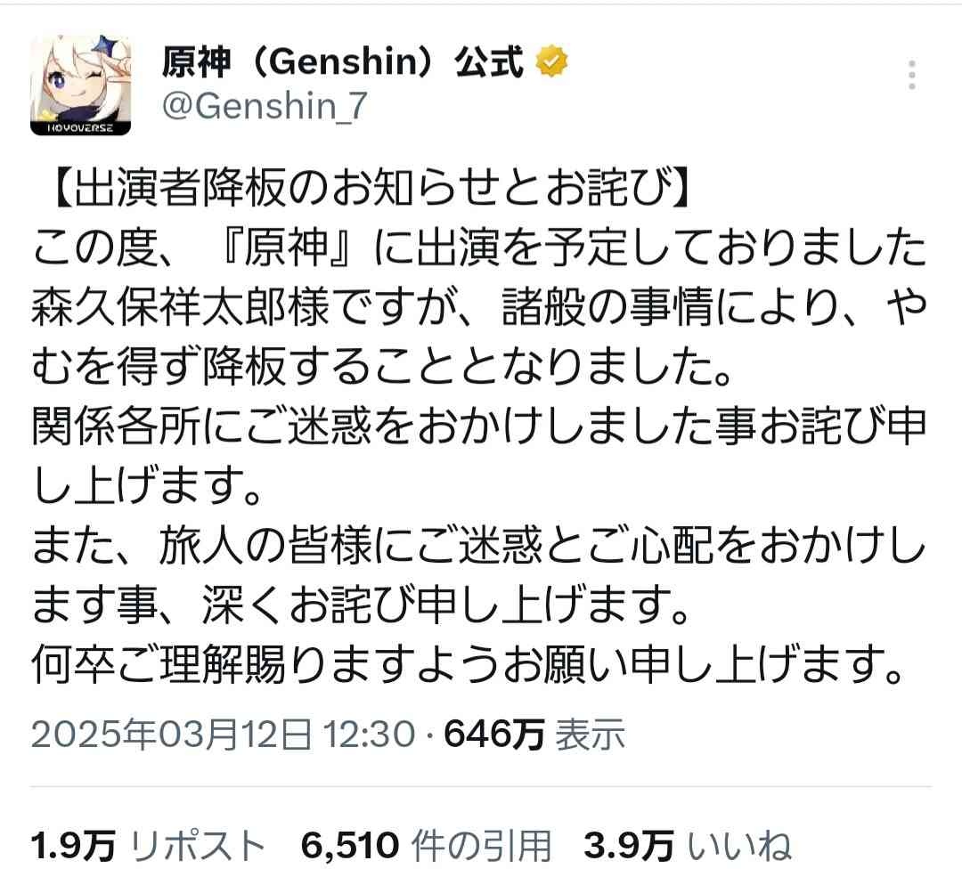 原神、ウイグル人の人権を擁護した声優・森久保祥太郎さんを降板させ大炎上www