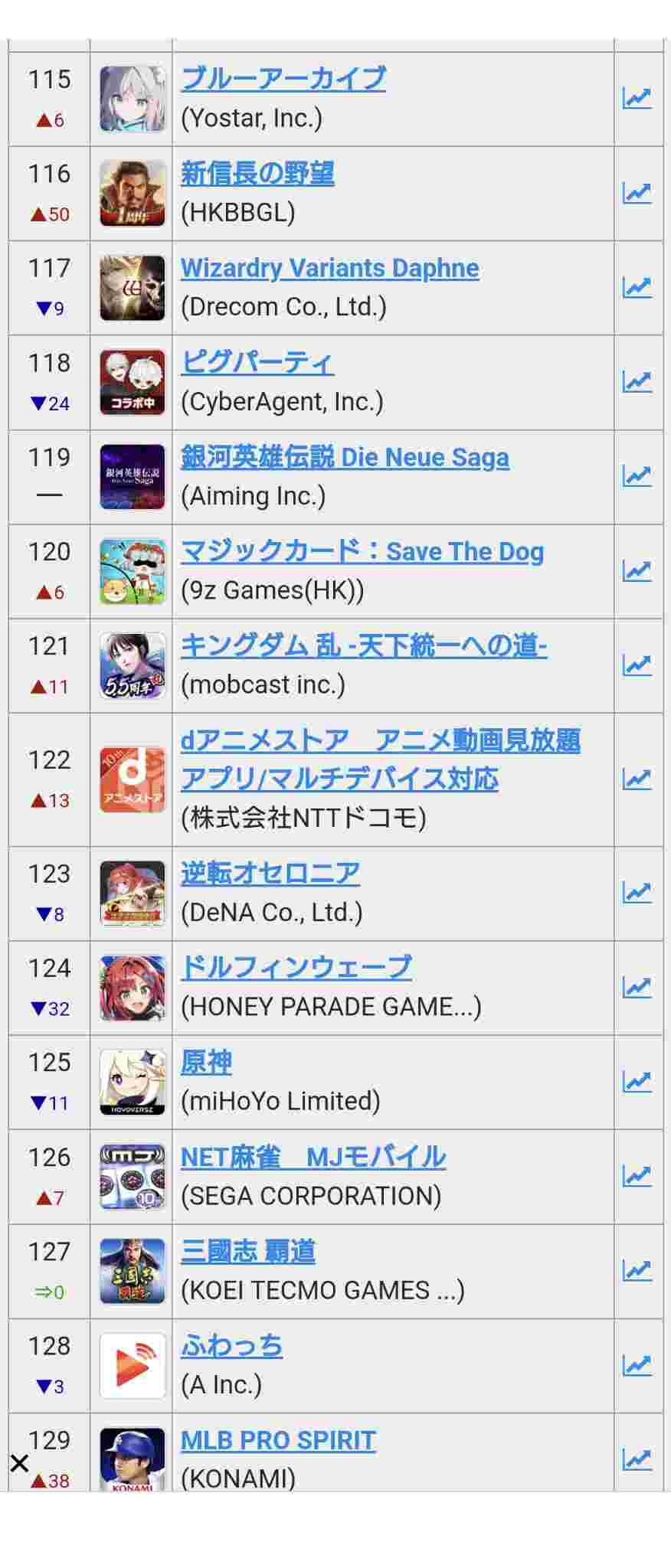 - 知らんけどガチャ更新とかしてない通常セルランやろ、って言おうとしたけどそれにしてもブルアカに負けるのか