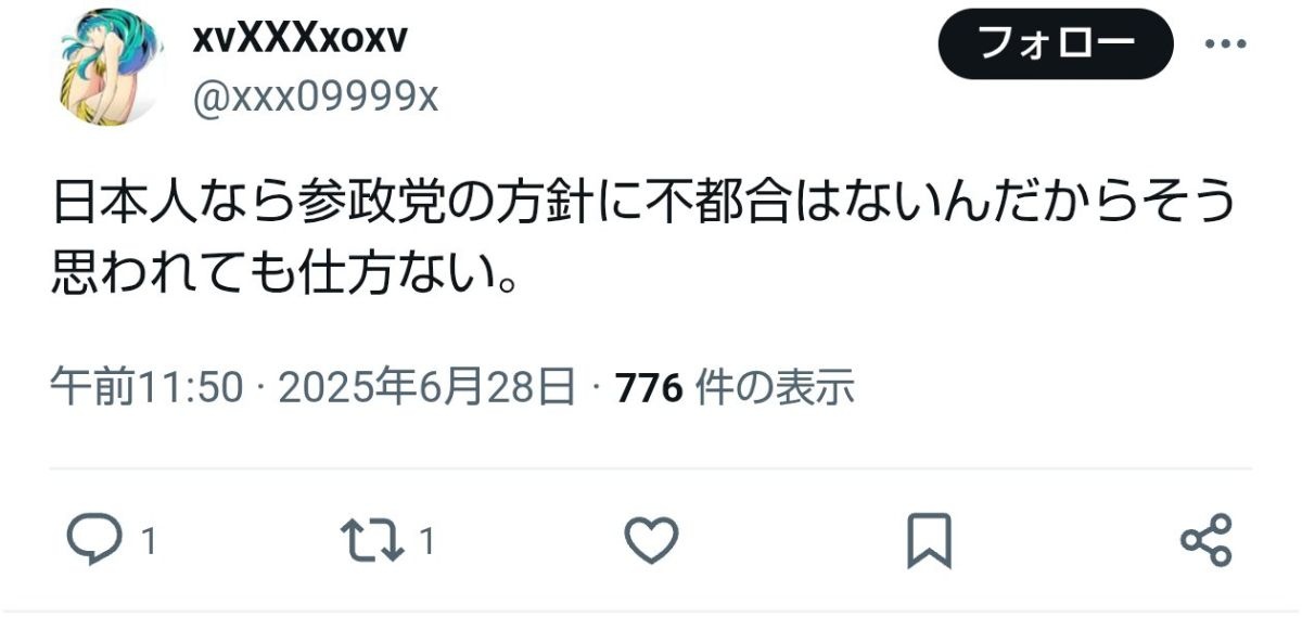とりあえず参政党に投票しとけば日本人ファーストが民意の流れになる