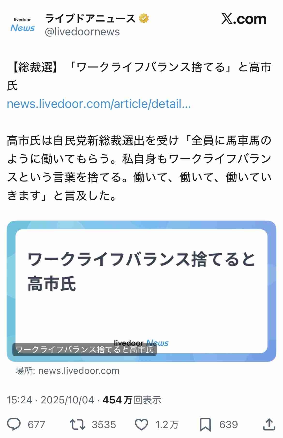 - 高市がライフワークバランスを守って頑張りますって言ってたらそれはそれで叩くんだろうから何を言っても意味ない