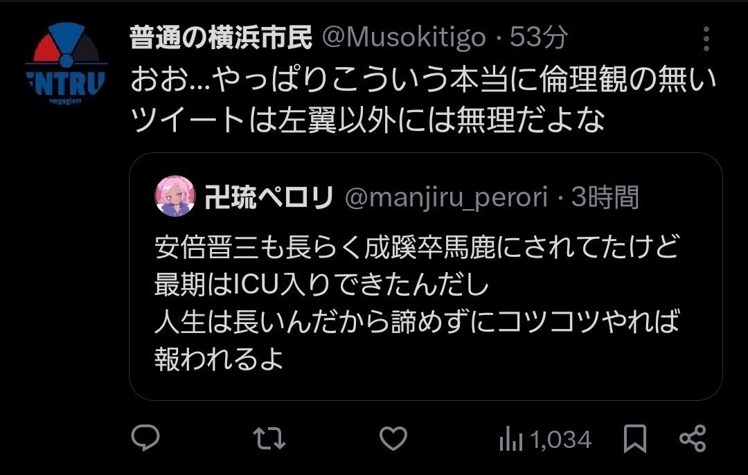 - 山上をテロリストに仕立てまつり上げるアベガーはネトウヨ並みに社会悪やねん(´・ω・`)