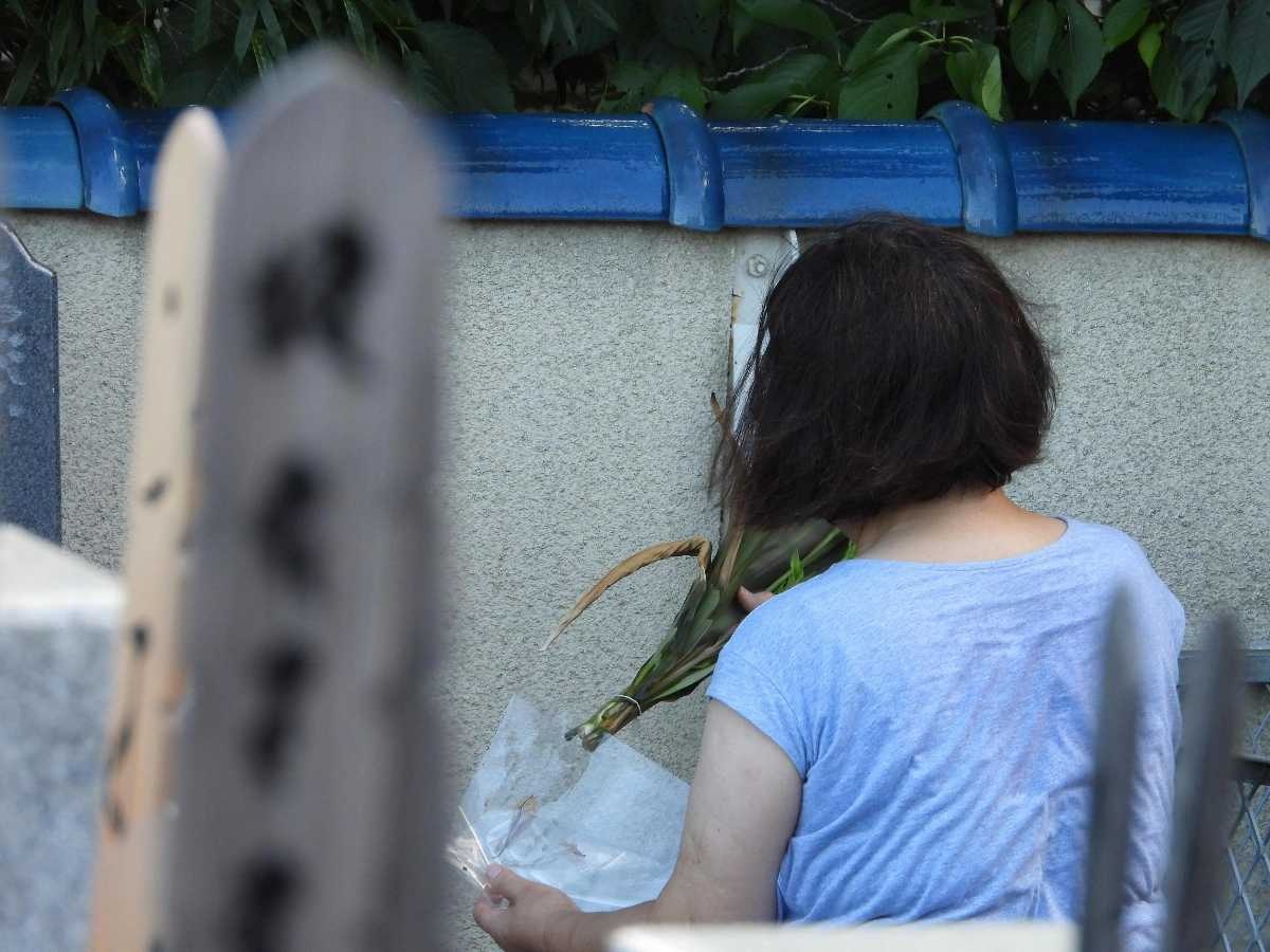 墓に供えられていた枯れた花なんかを片付けたあと15分ぐらい?とかなり長い間お経を読んだり拝んだりしてた