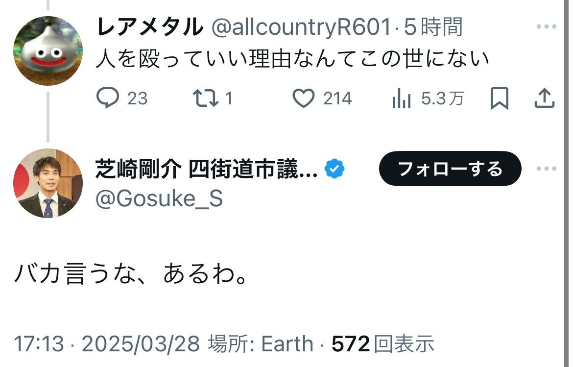 この議員が突然この意味不明なリプしてる - 23 : 2025/03/28(金) 20:02:20.993 ID:XHGHLh6zr