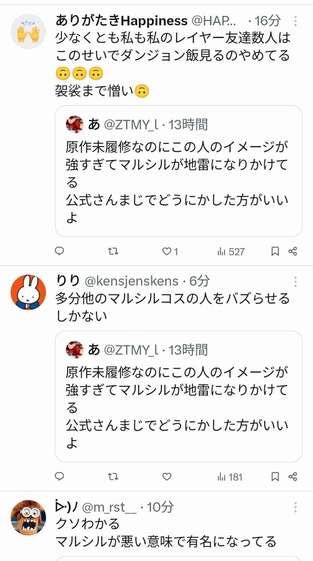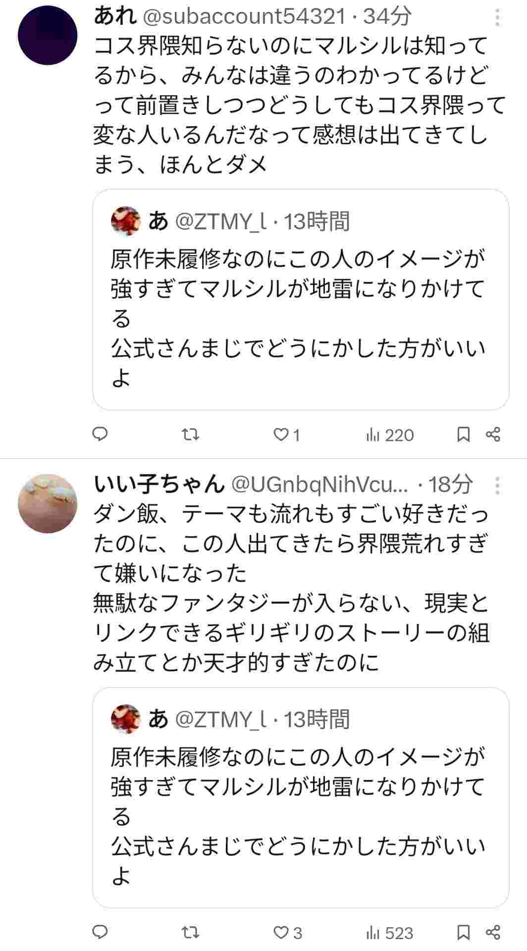 因習村「あの人またマルシルのコスプレしてる!原作未履修のくせに!!」→「原作通りのシーンでは?」と論争に