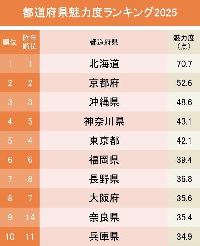- 東京人にとっての観光魅力度ランキングなんやろ?