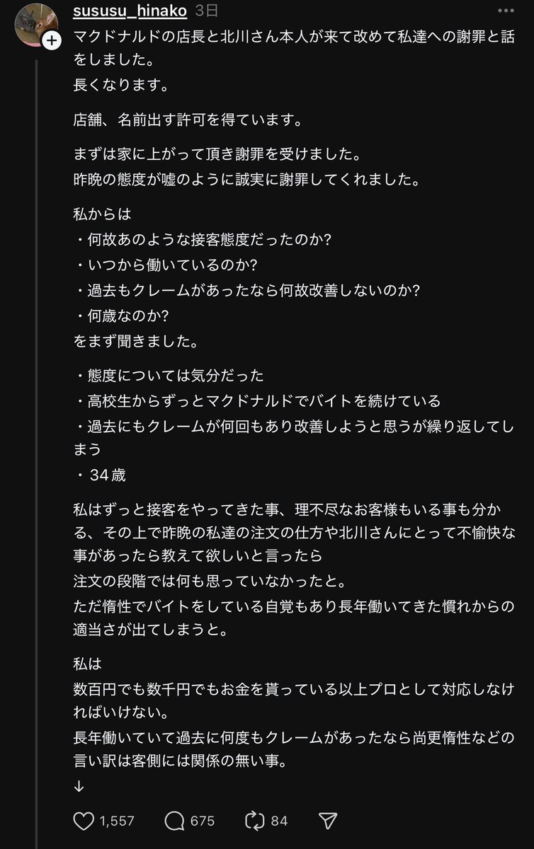 謝罪まではわかるが、それ以降は客のラインを越えてる
