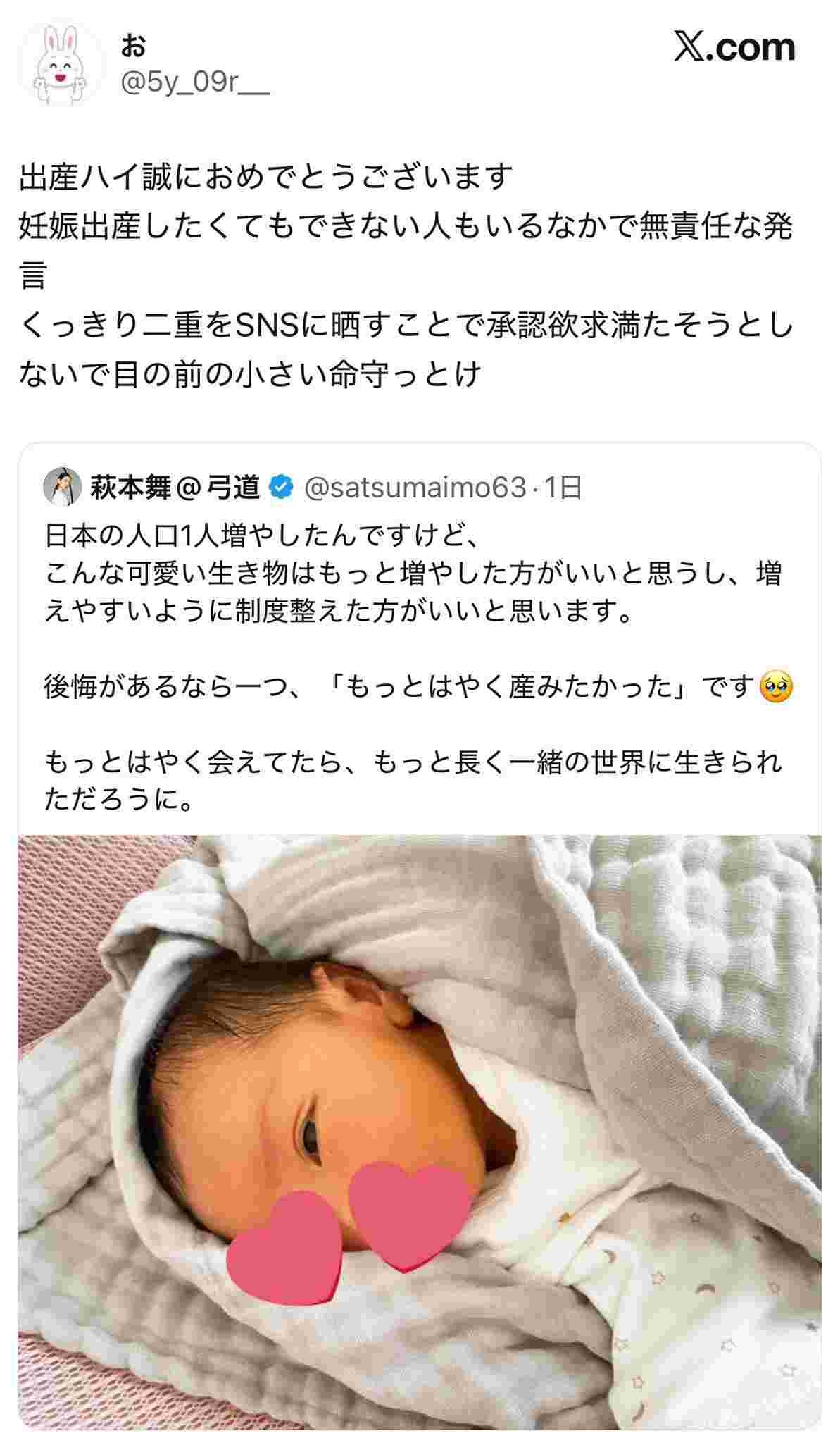 女、出産報告をしただけのお母さんを集団でボロクソに叩くwww