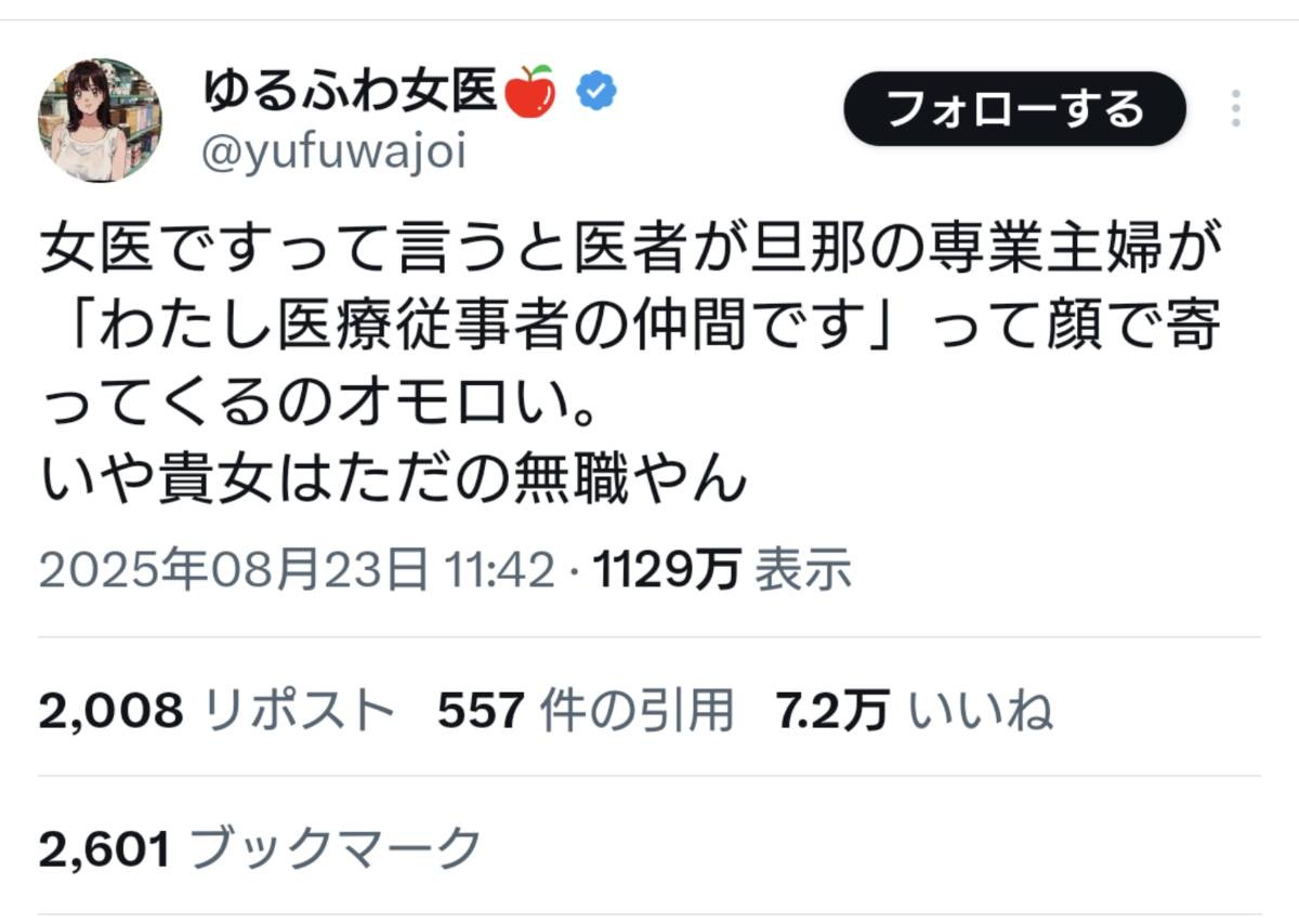 自分で女医ですとは言わんやろ - 57 : 2025/08/24(日) 17:55:44.02 ID:Vj7TDkLt0