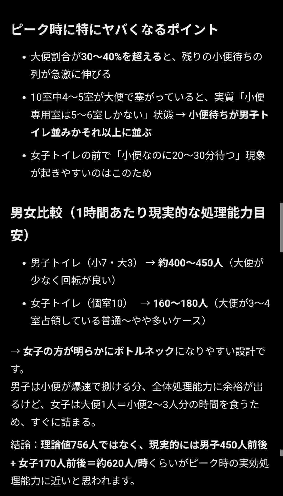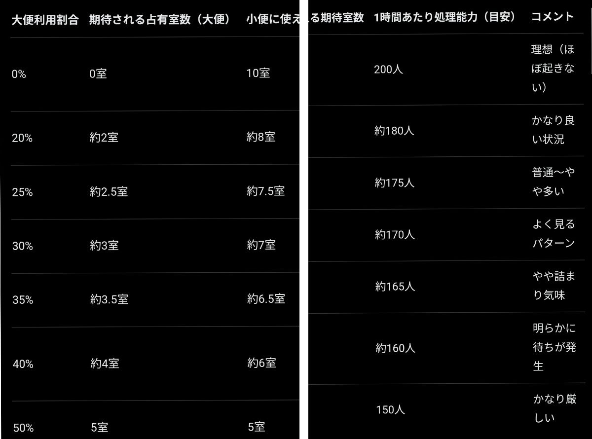 前提として男子トイレと女子トイレの処理能力は確かに違うでもこれって小便器と大便器が混合になってるせいでは?