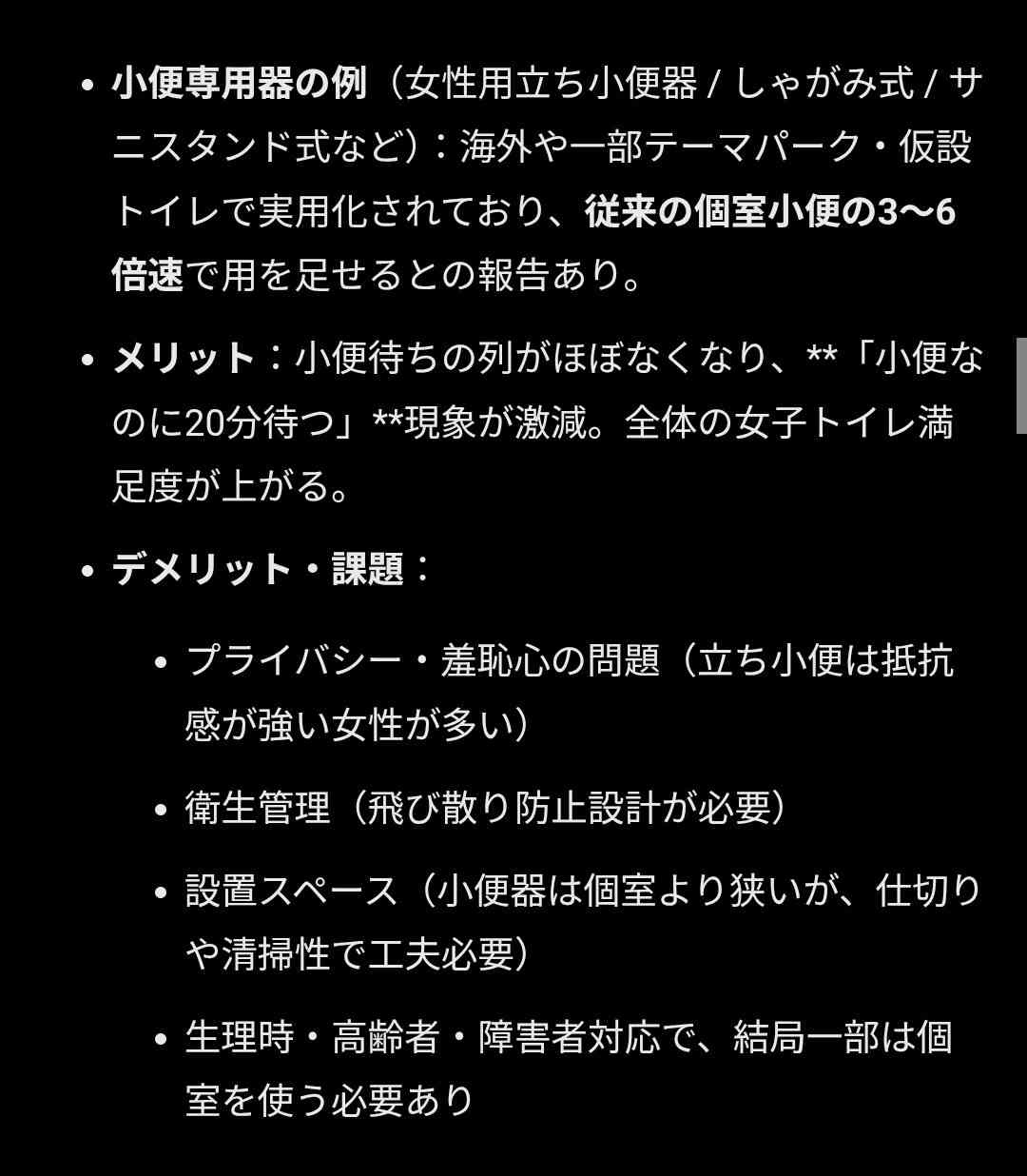 - マジで個室でいいから女性用小便器作った方がいいぞ