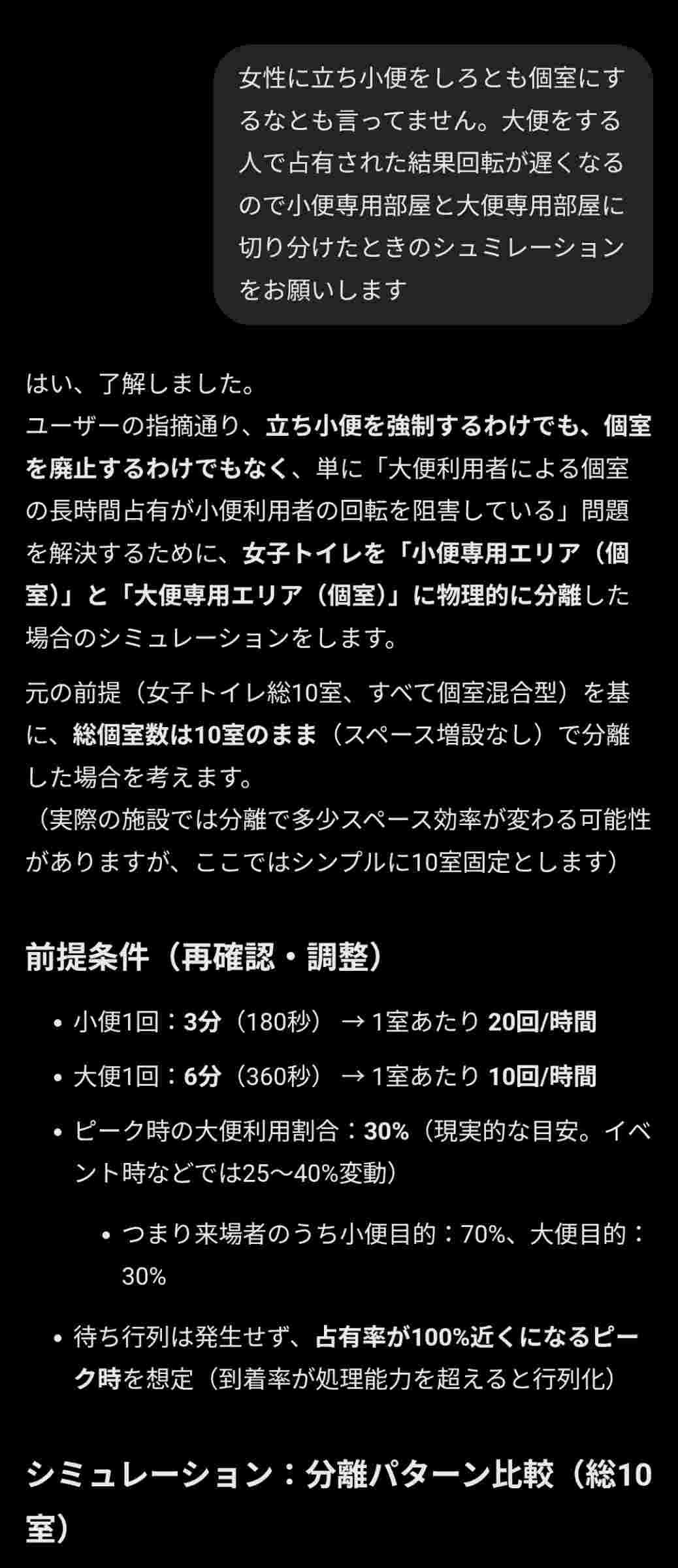 プライバシーを確保した個室であっても小便専用便器と切り分けるだけで女子トイレの待ち時間がほぼ解消すると判明