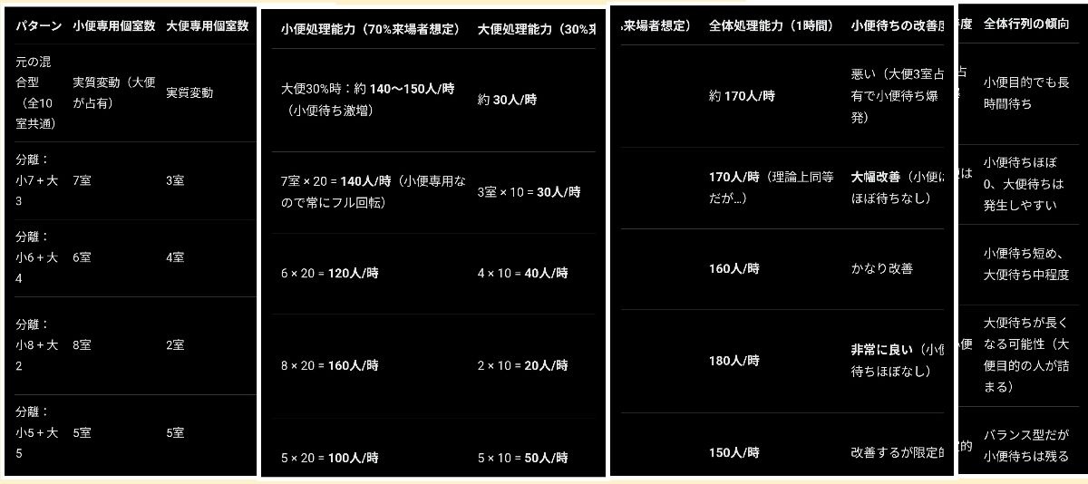うんこ割合が増えれば増えるほど待ち時間が発生小便するだけなのに20分待ちという意味不明な状況ができる