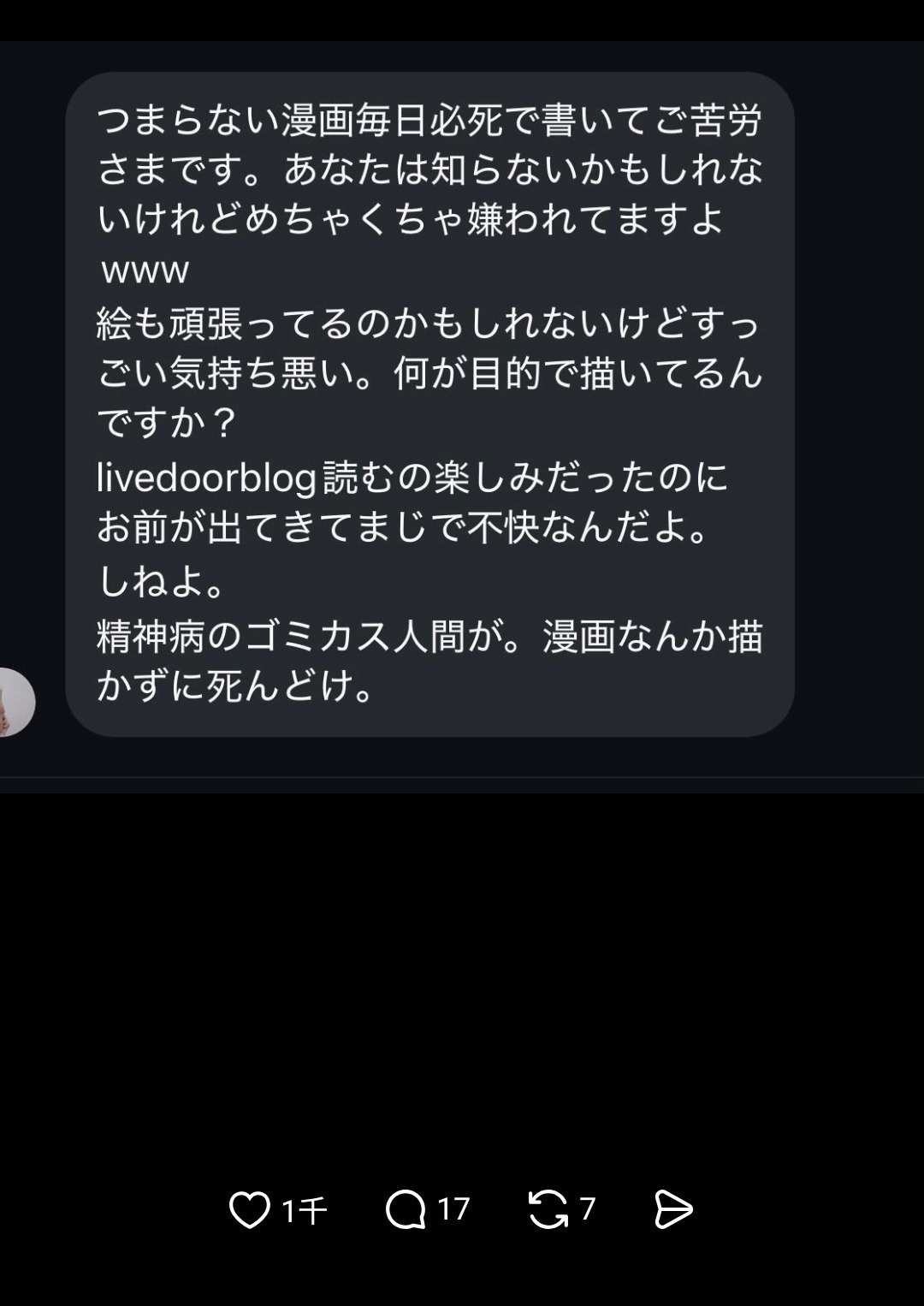 - 好みの絵ではないけどわざわざ本人に誹謗中傷する精神性よなあ。