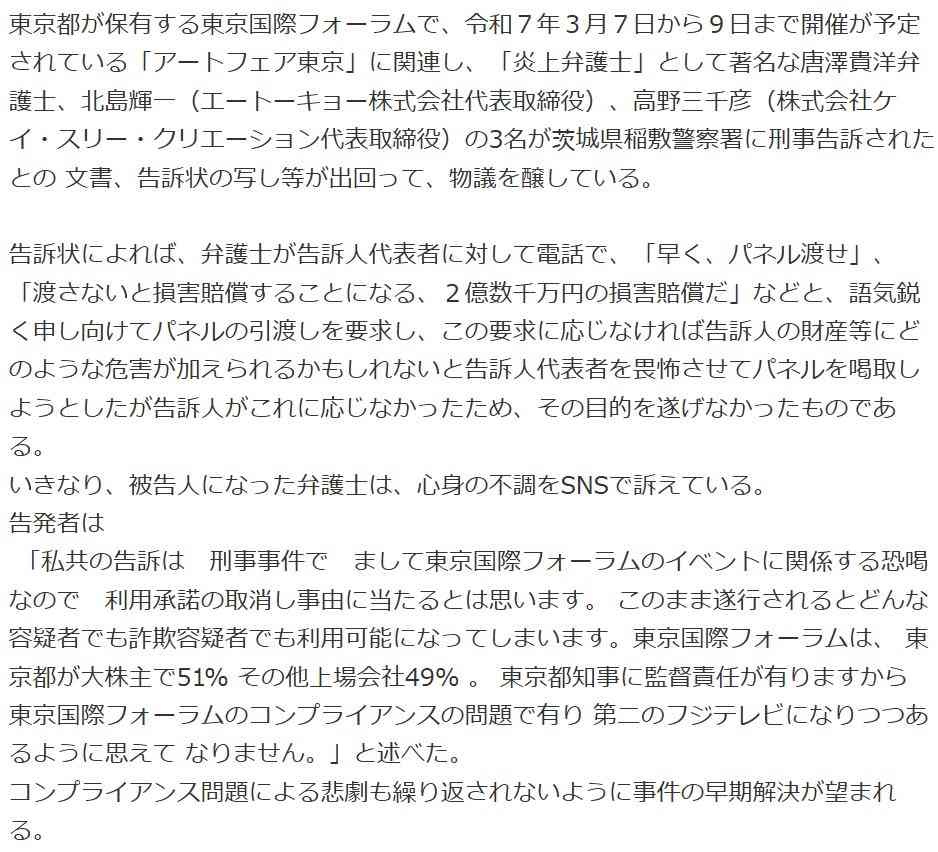 - 唐澤貴洋が恐喝しつつ2億円請求した