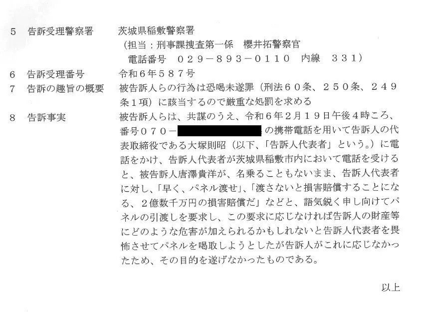 名乗りもせずに「パネルを早く渡せ」「渡さないと損害賠償2億だぞ」と謎の脅迫