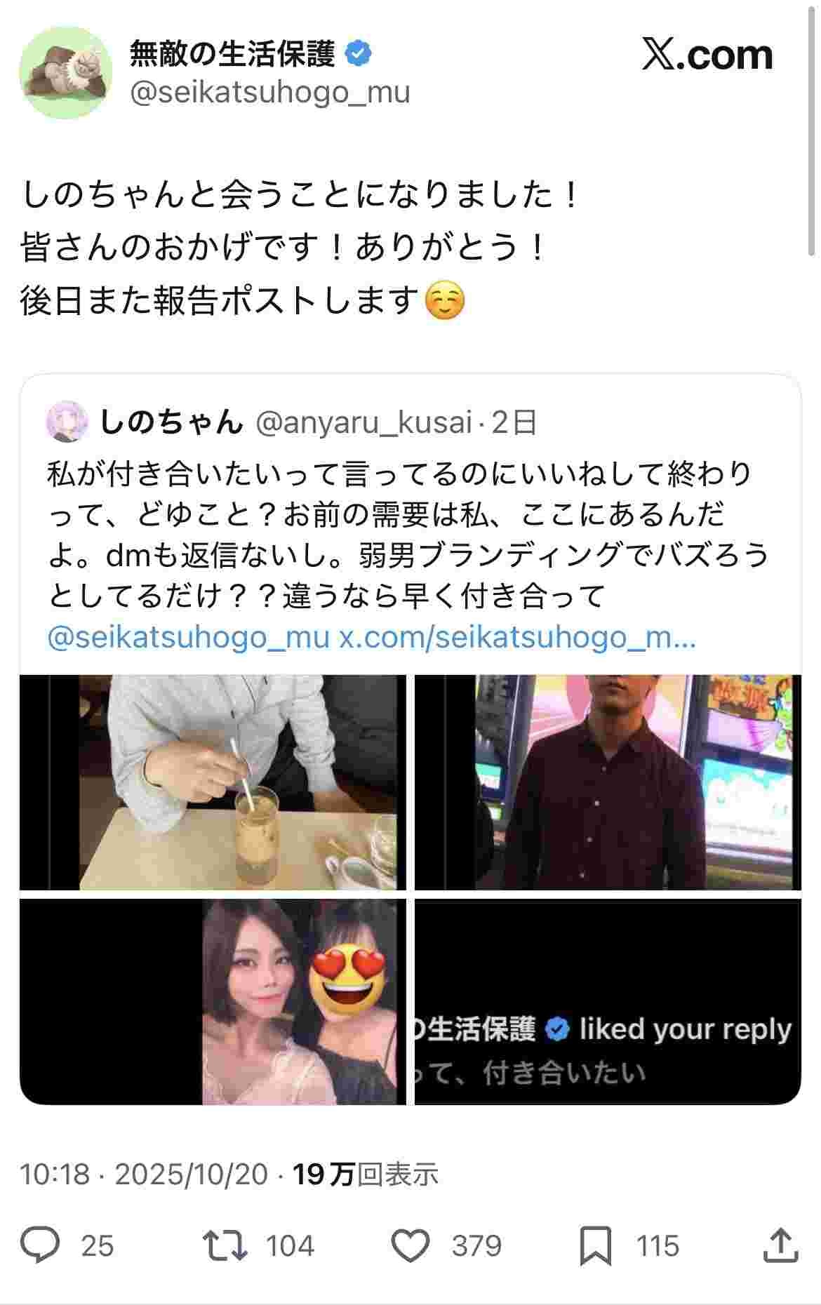 弱男、自撮りを上げながら女叩きしてたら逆ナンされ女の子と付き合うことに!🥳おめでとう!㊗