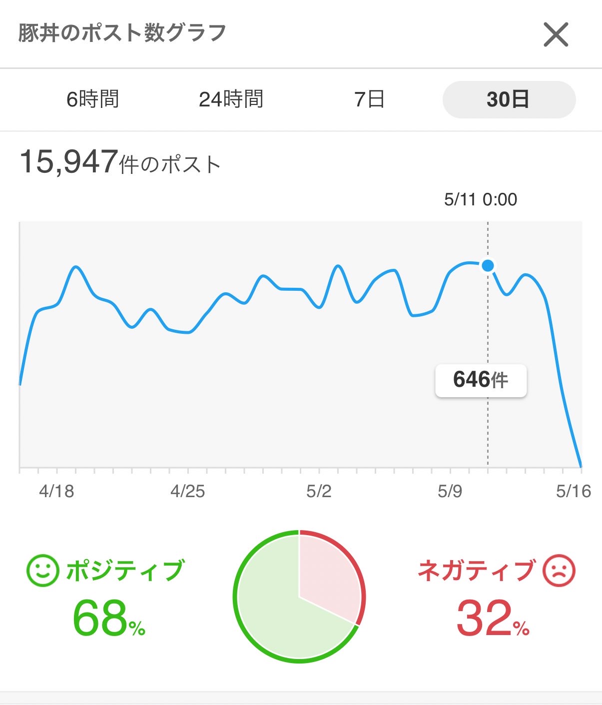 豚丼の分析結果、ポジティブが多数なことから料理関係だと思われる